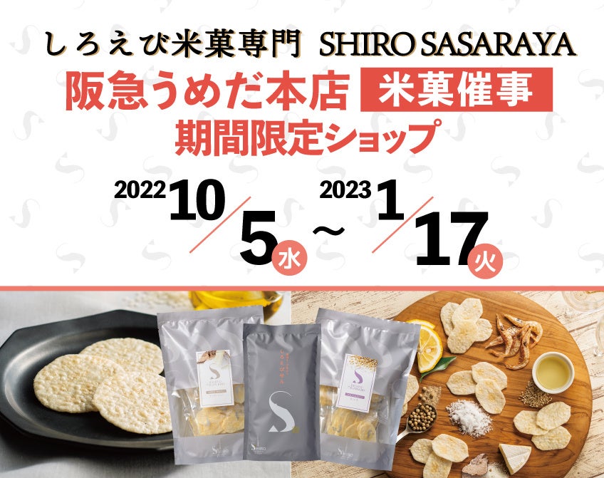 しろえび米菓専門「SHIRO SASARAYA」はデビューから1年半。阪急うめだ本店にて何度か短期間での出店を行ってきましたが、大好評につき3ヵ月間のロングラン出店が決定いたしました。