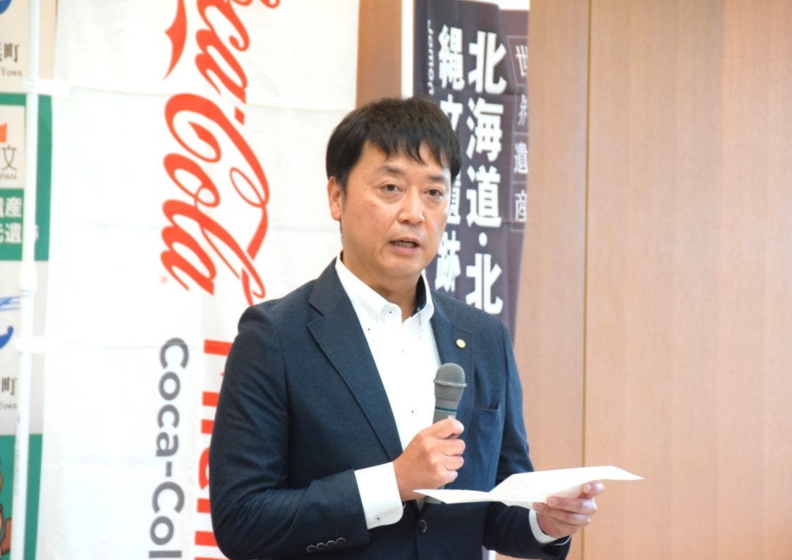 「大平山元遺跡に関して、当町としてまだまだ周知が不足していると実感していた中、このたびの協定締結とPR自動販売機の提案をしていただき、大変ありがたく思います。引き続きサスティナブルな取り組みを一緒になって実行させていただけますと幸いです。」