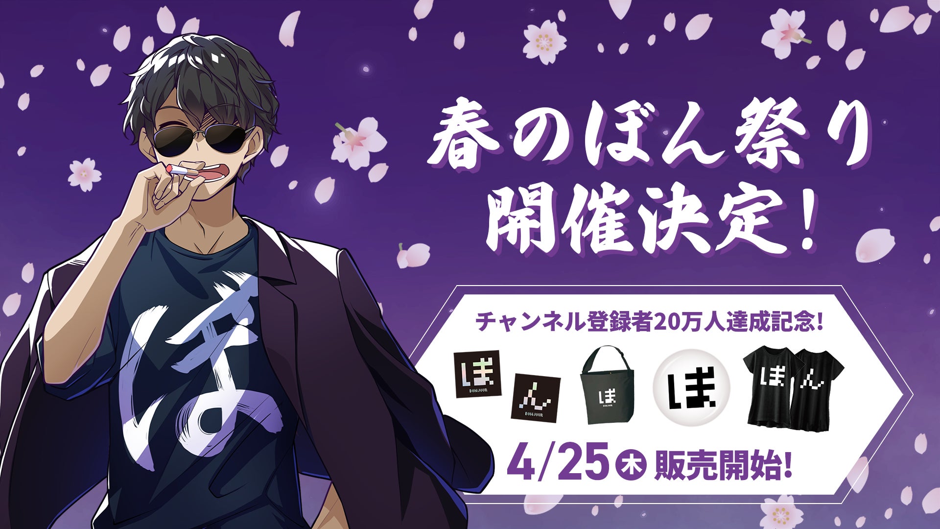 ゲーム実況グループ「ドズル社」メンバー ぼんじゅうるのYouTubeチャンネル登録者20万人記念グッズを新発売する『春のぼん祭り』開催!