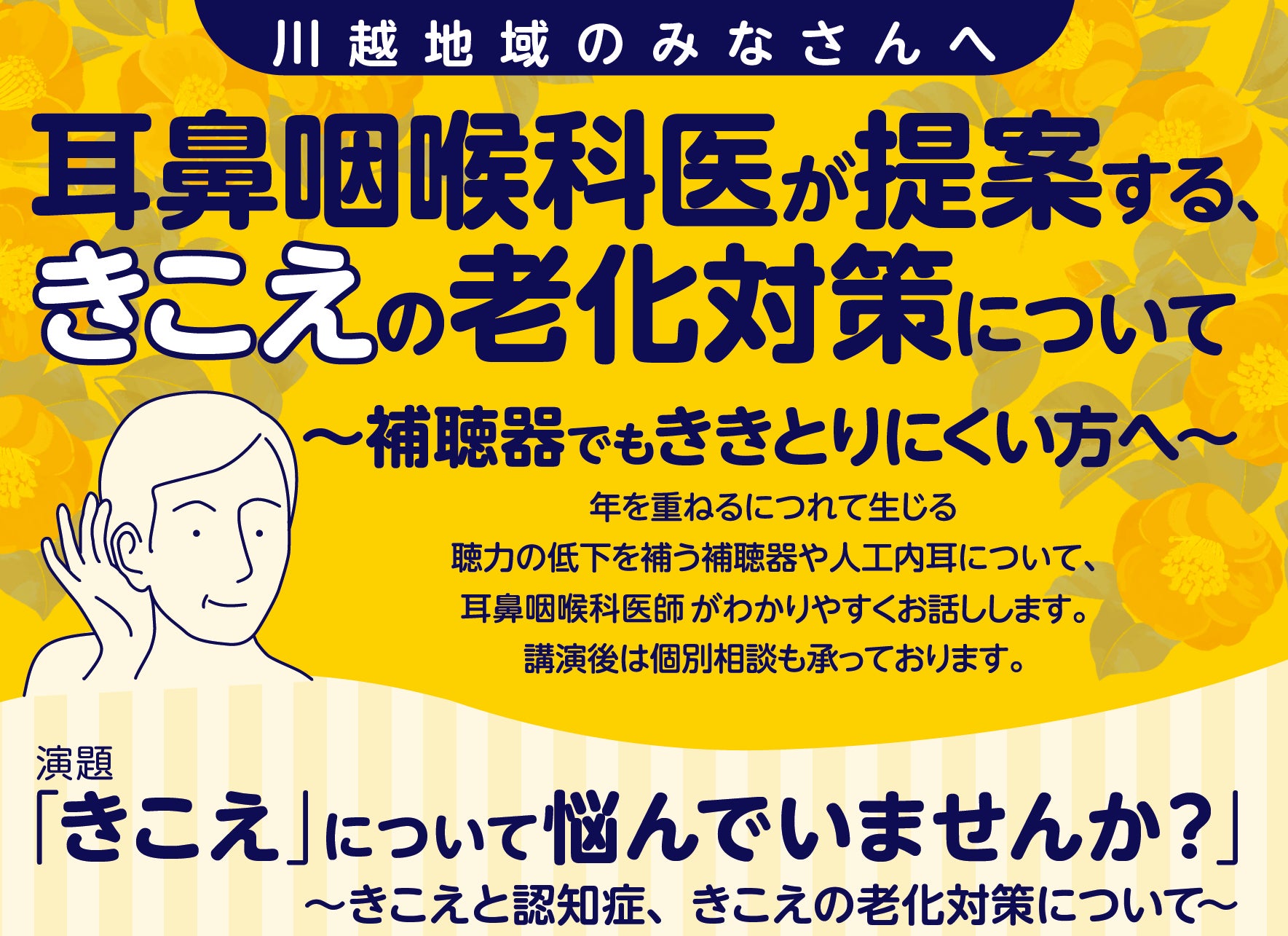 「きこえ」について悩んでいませんか?」 ~きこえと認知症、きこえの老化対策について~ 川越耳科学クリニック 院長 坂田英明先生 |