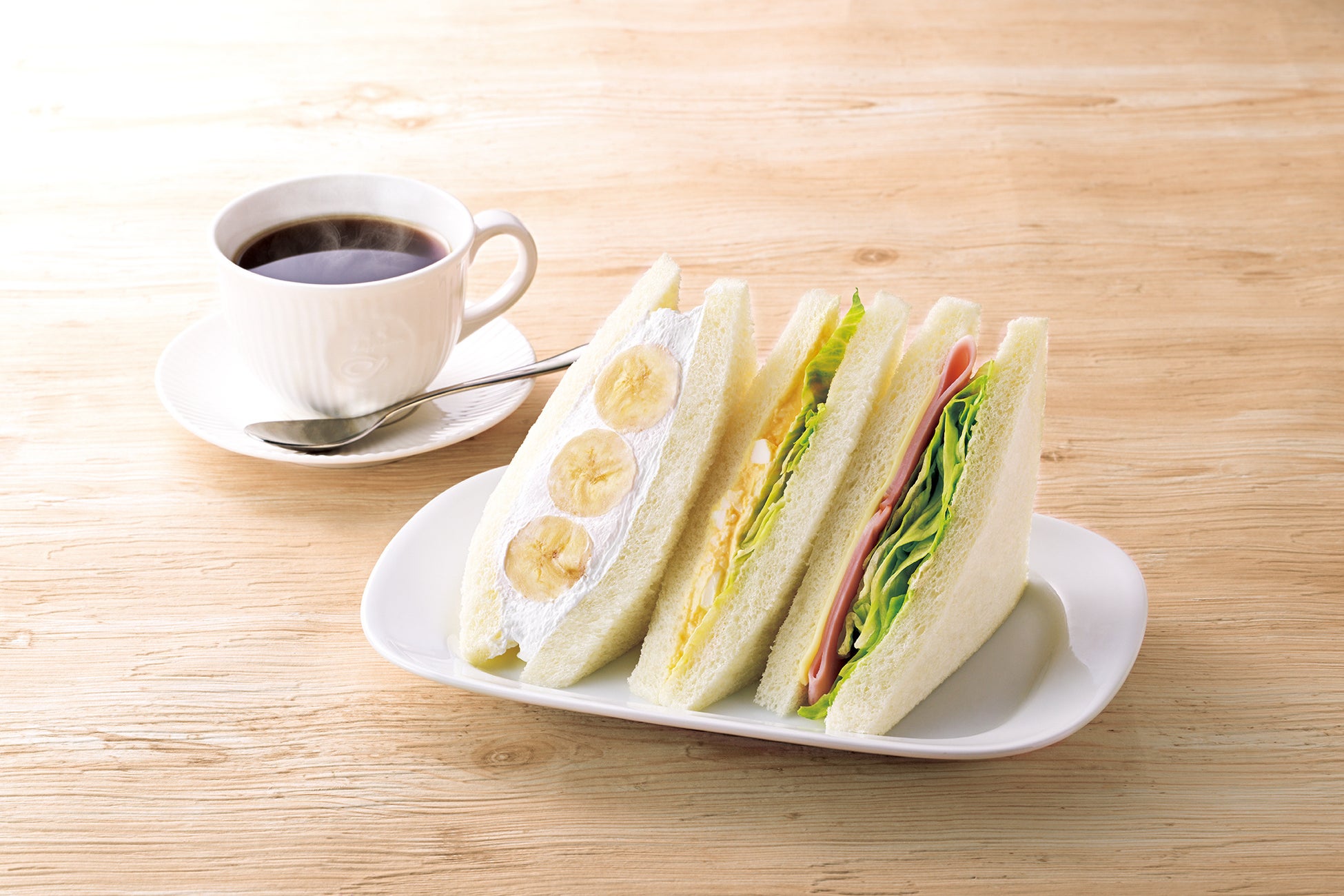 フレッシュサンドイッチは、人気のタマゴサンドとたっぷりのレタスとハムがセットになった定番のサンドイッチから、バナナとホイップを合わせた見た目もインパクトのあるスイーツ系のサンドイッチまで、合計7種類をラインアップ。テイクアウトも可能で、時間がない朝でも、手軽にバランスよくドリンクと一緒にお召し上がりいただくことができ、お得で健康的な朝習慣をサポートします。