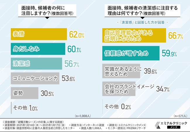 今回の調査を通じて、面接における第一印象や清潔感が、採用活動において極めて重要な要素であることが改めて明らかになりました。
