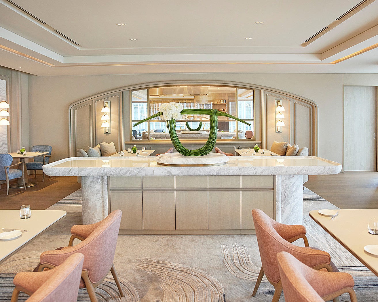 ディナータイムには、6人掛けのプライベートルーム「シェフズテーブル」を予約することができます。香港を代表する建築家、アンド レ・フーの設計によるこのプライベートルームでは、オーケストラのようなSÉZANNEの料理パフォーマンスを目の当たりにすること ができるのです。