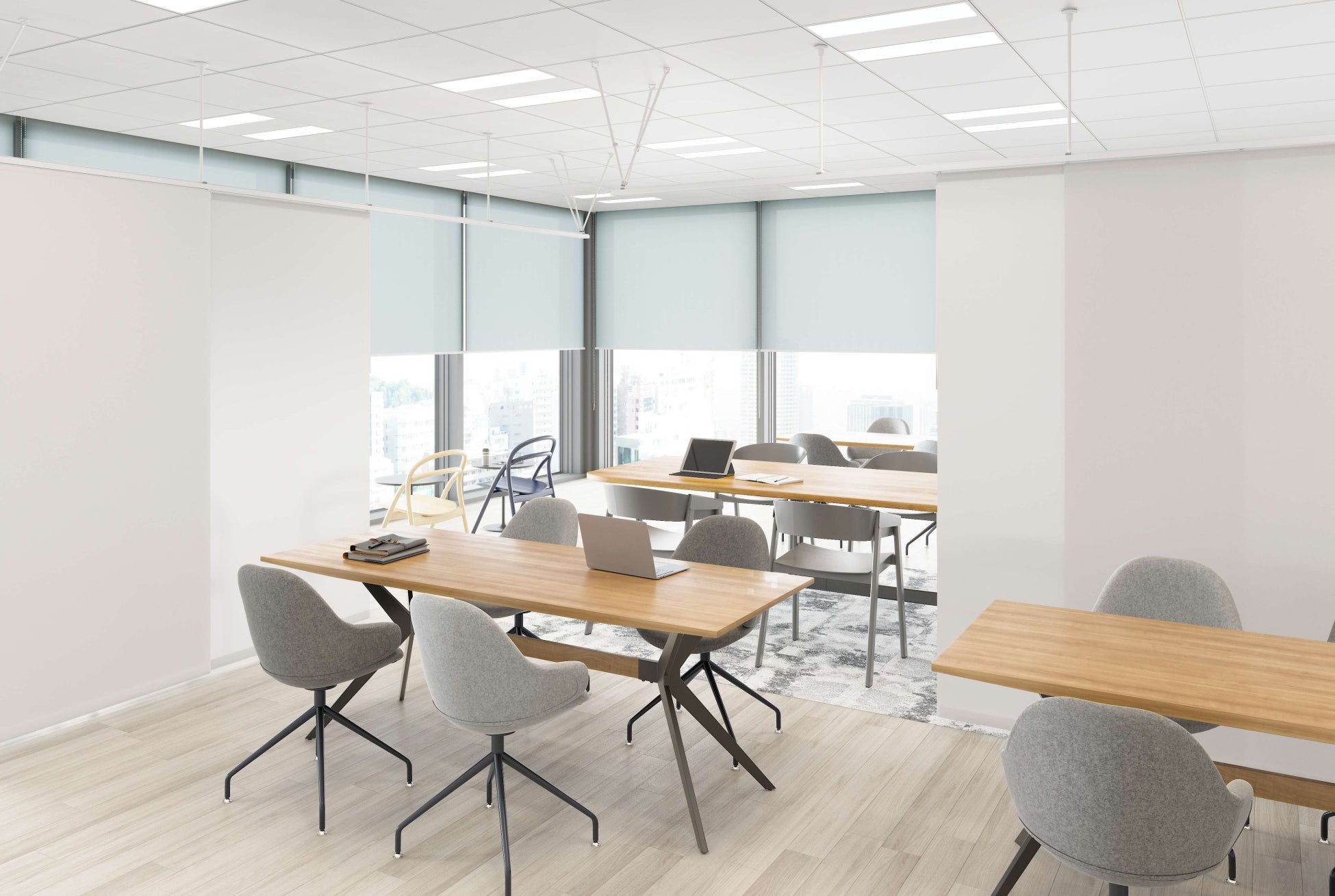 ■ファブリック製品による間仕切りに対応し、用途に応じた柔軟な空間演出を実現