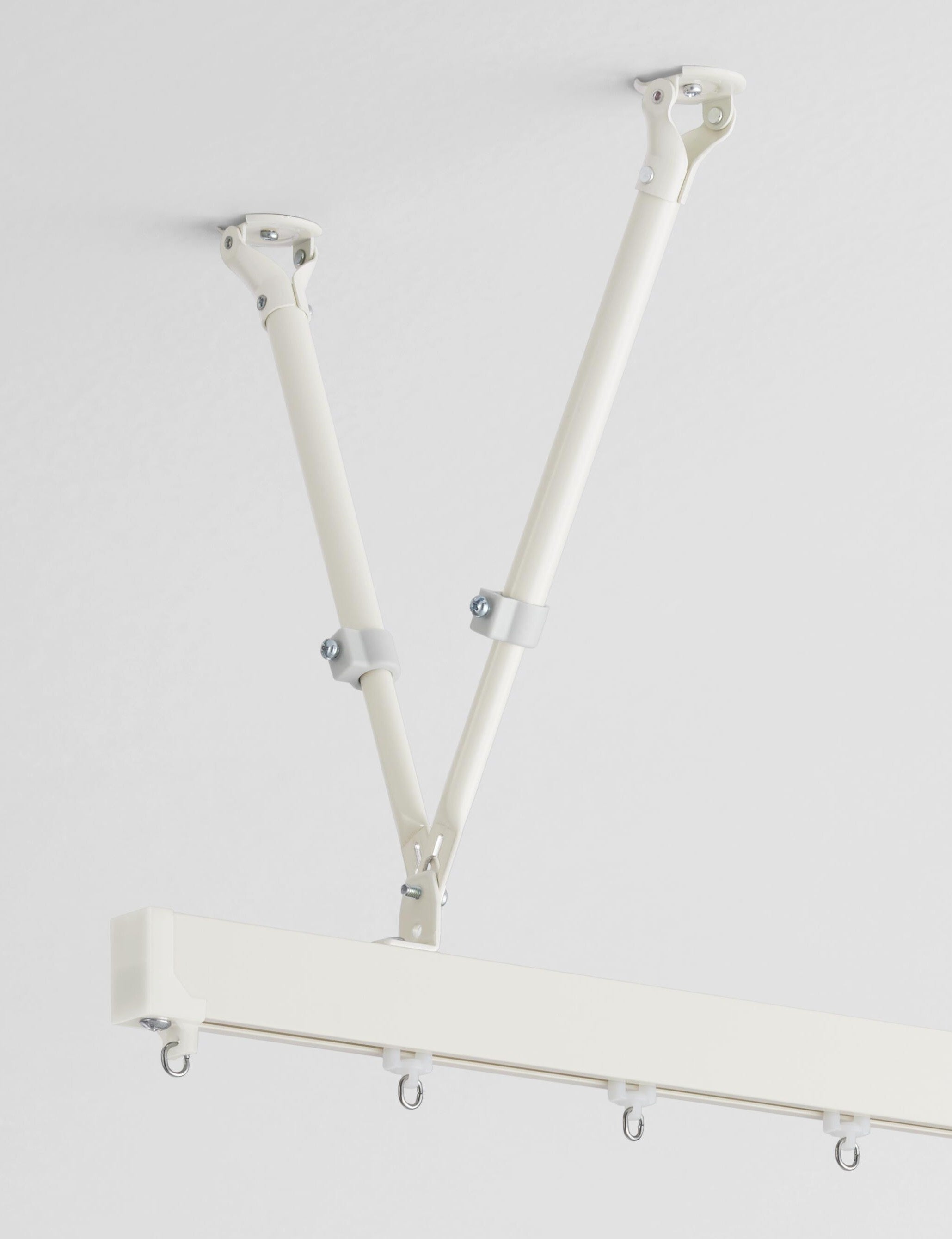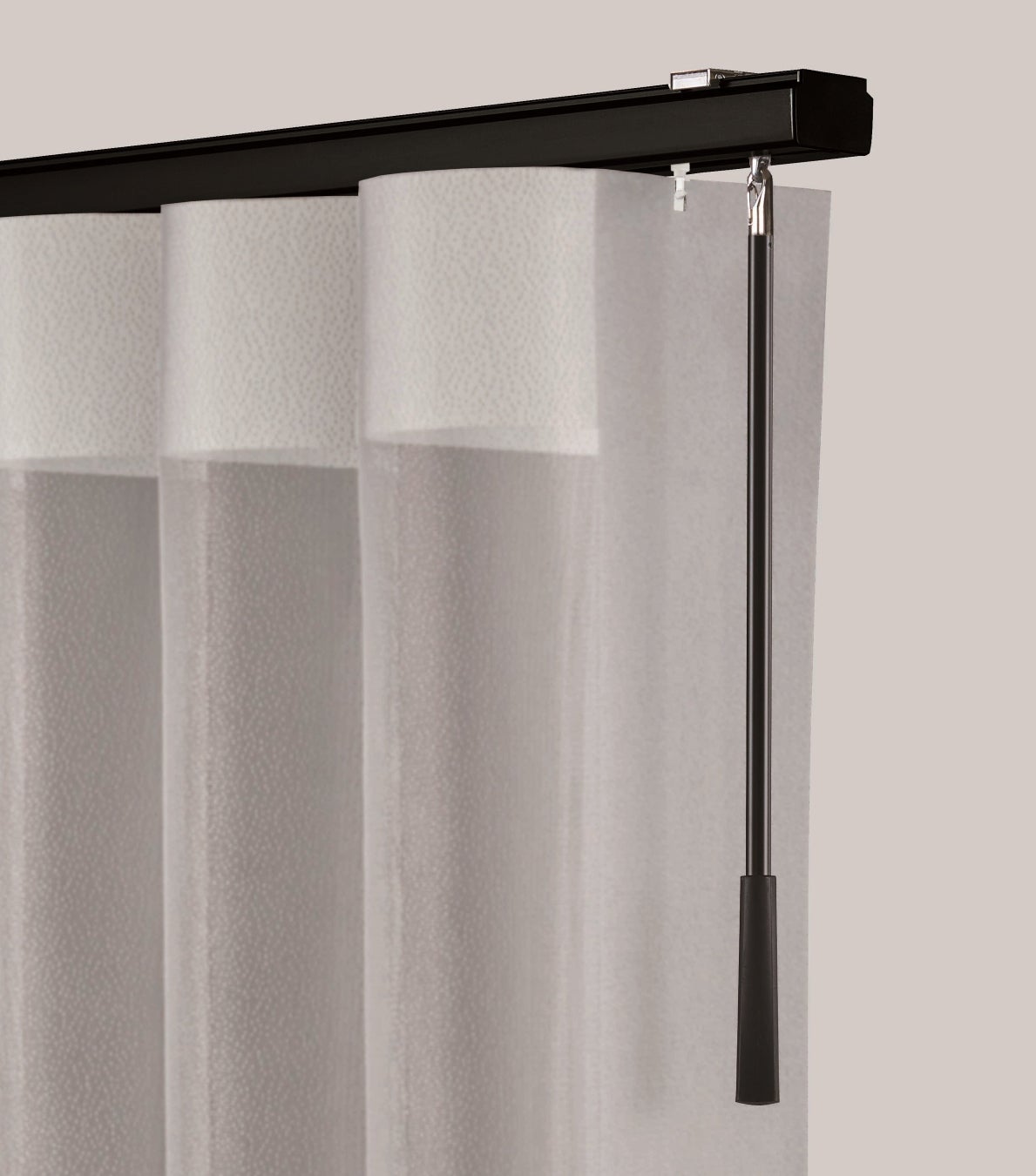 今回カーテンレールと組み合わせて使用する「吊棒」についてもリニューアルし、「固定吊棒」「伸縮吊棒」の2種類をラインアップしました。また、両製品にマットグレーを追加し、モノトーンを基調とした空間との統一感を高めました。カーテンレール「クロシード」と組み合わせることで、空間全体のデザインに一体感を持たせることが可能です。