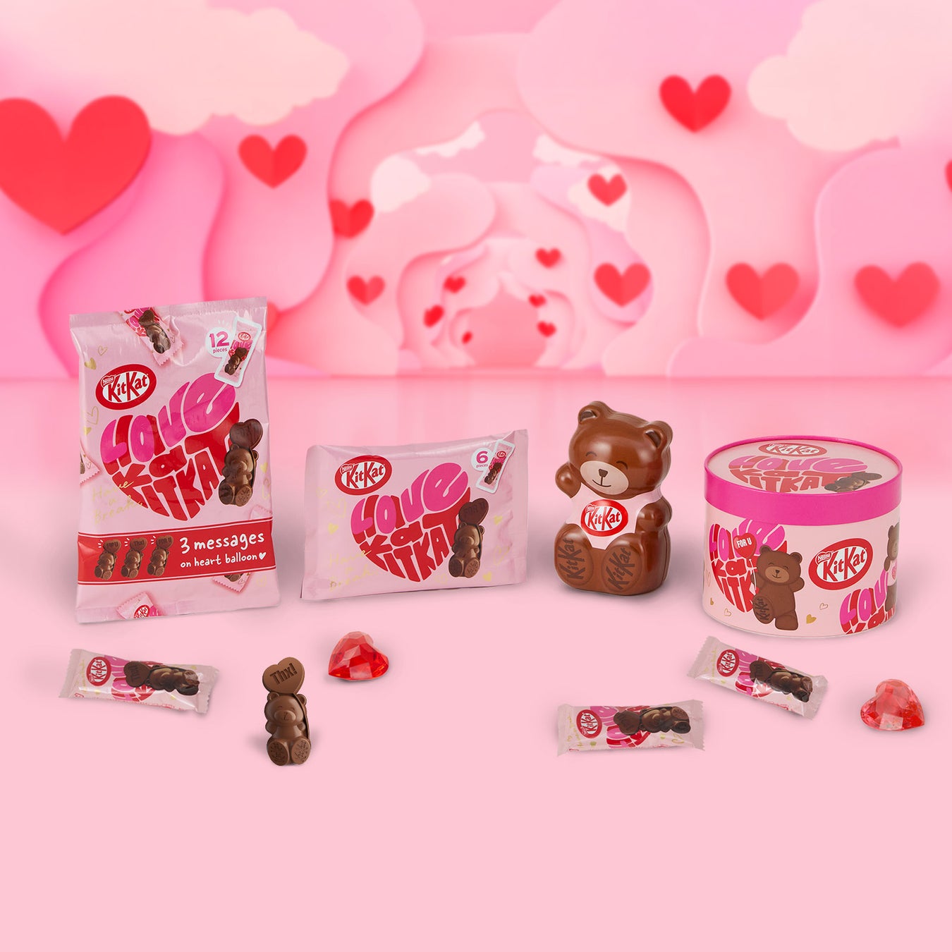 あなたの思いを届けてくれる、ちょっとシャイな"ハートフルベアー"。さあ、想いが届く"キットカット"で、キット、みんな☺になるよ。