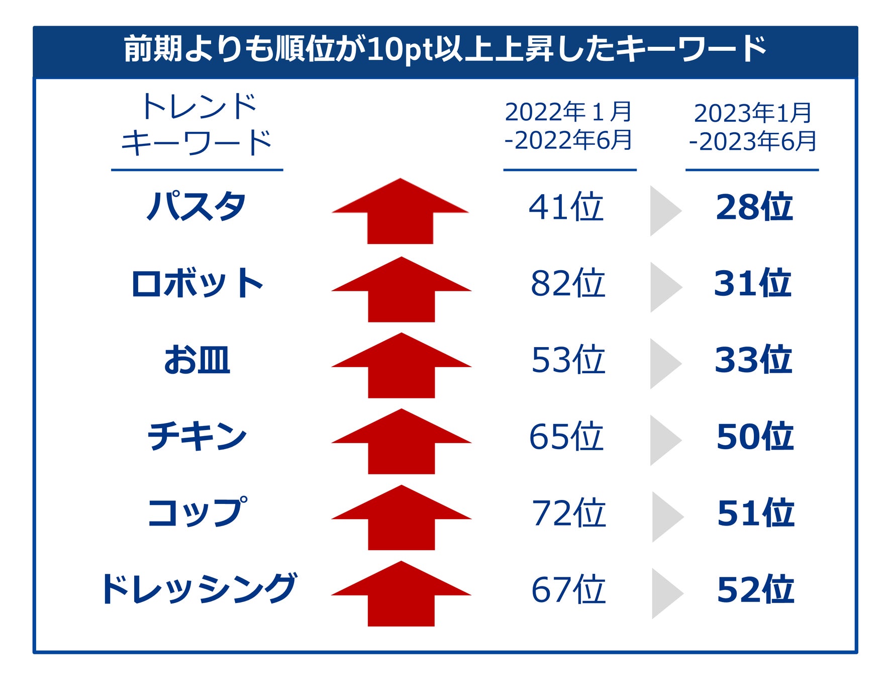 母集団①と②の出現キーワードランキングを比較。前期(①)よりも順位が10pt上昇したキーワードは以下の通り。