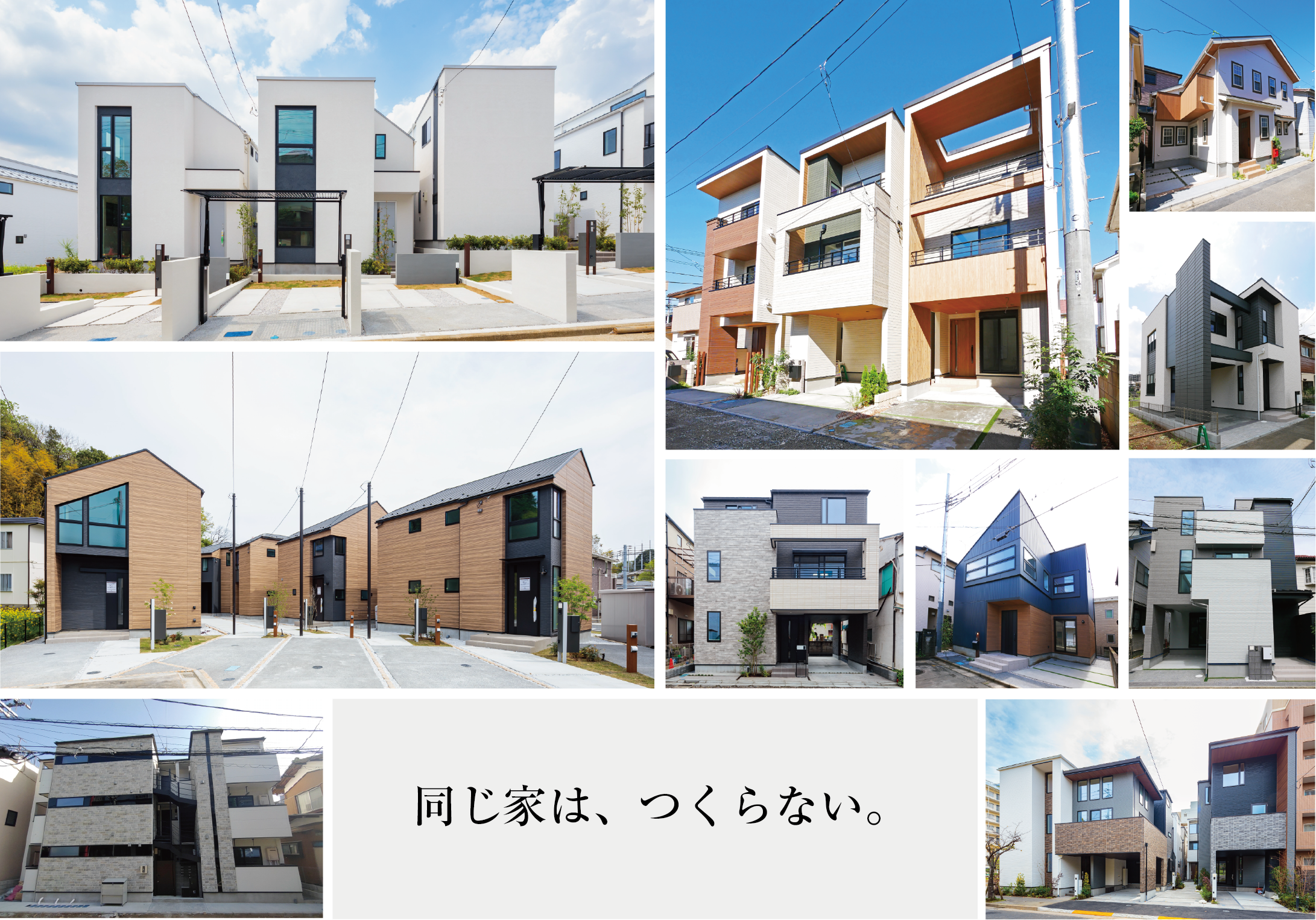 当社は「同じ家は、つくらない。」のポリシーのもと、社会的芸術性と個人的生活空間のプロデューサーとして、分譲住宅ひいては美しい街並みをつくり続けています。