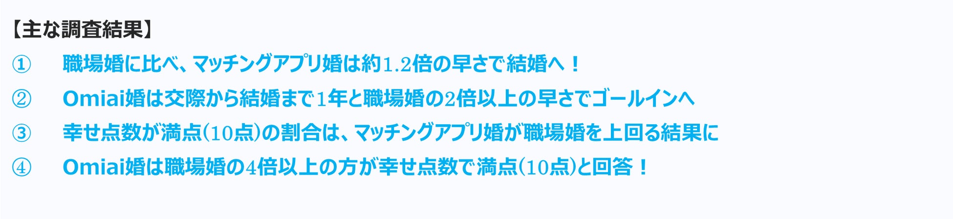 調査方法 : Omiaiで出会った方と結婚した方へのインターネットリサーチ
