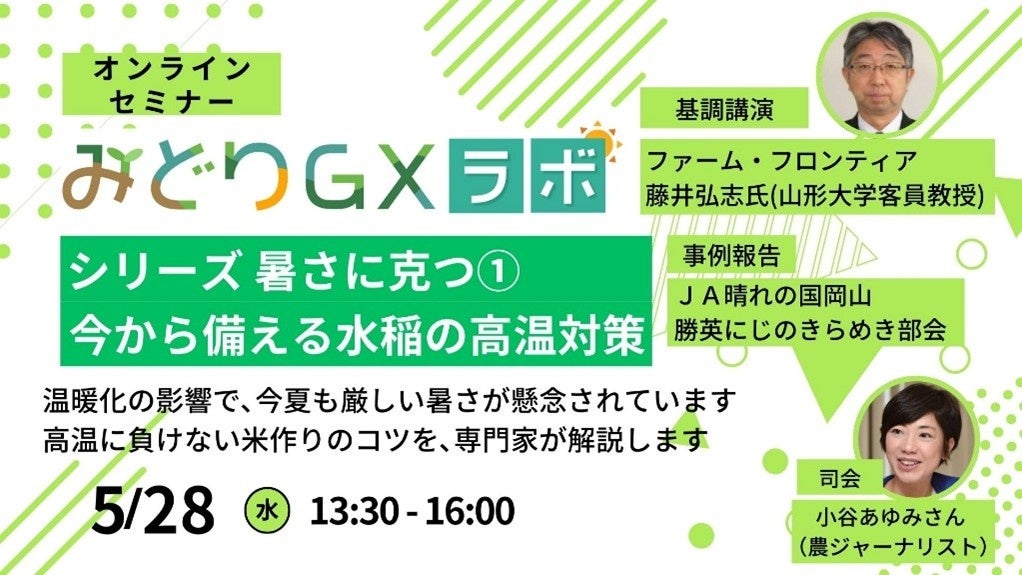 みどりGXラボは、活動2年目となる2025年度、会員の関心の高い「有機農業」と「温暖化(高温)対策」をオンラインセミナーで重点的に取り上げ、深掘りしていきます。