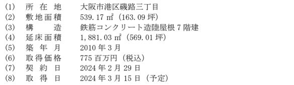 事業用賃貸マンション取得に関するお知らせ