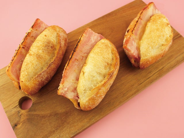 塩麹に漬けた厚切りスライスベーコンとハニーマスタードをフランスパンにサンドしました。