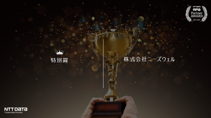 NTT DATA RPA Partner AWARDは、RPA・AI-OCRビジネスでの卓越した功績をあげたパートナー企業に対して贈られるもので、当社は2020-2021の特別賞、2021-2022の更新率賞に続き、3年連続の受賞となります。