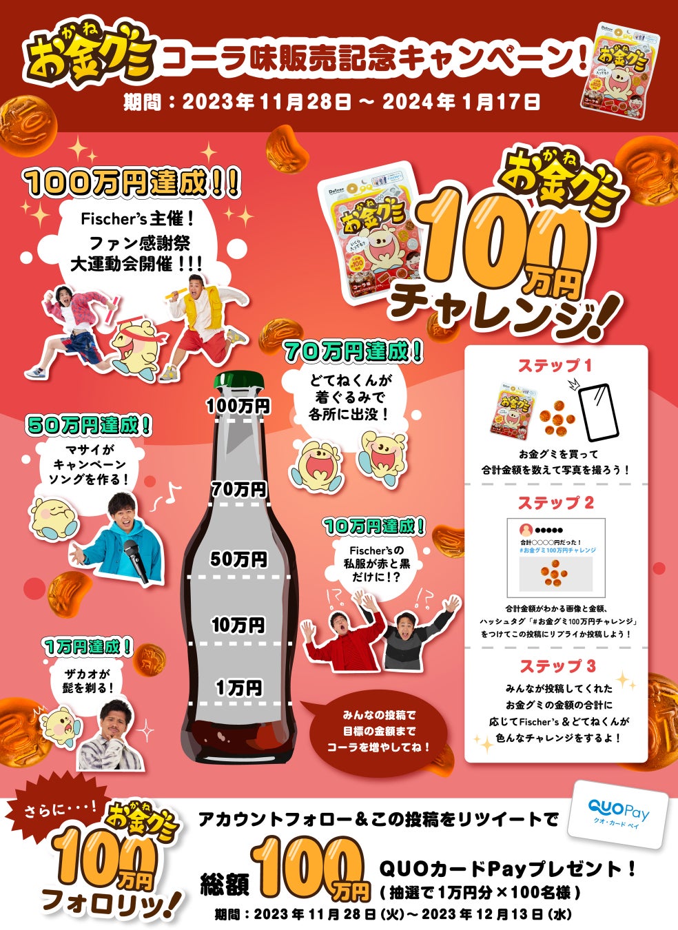 お金グミ コーラ味の発売を記念したキャンペーンを2つ実施いたします。