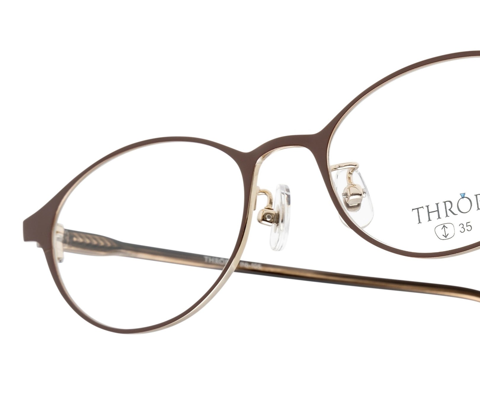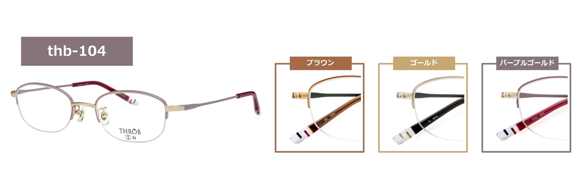 素顔の印象を大切にしたい方におすすめのナイロールタイプのスクエアシェイプ。テンプルには、弾性に富んだチタンを使用しており軽い掛け心地のモデルです。カラーはブラウン、ゴールド、パープルゴールドの3色です。