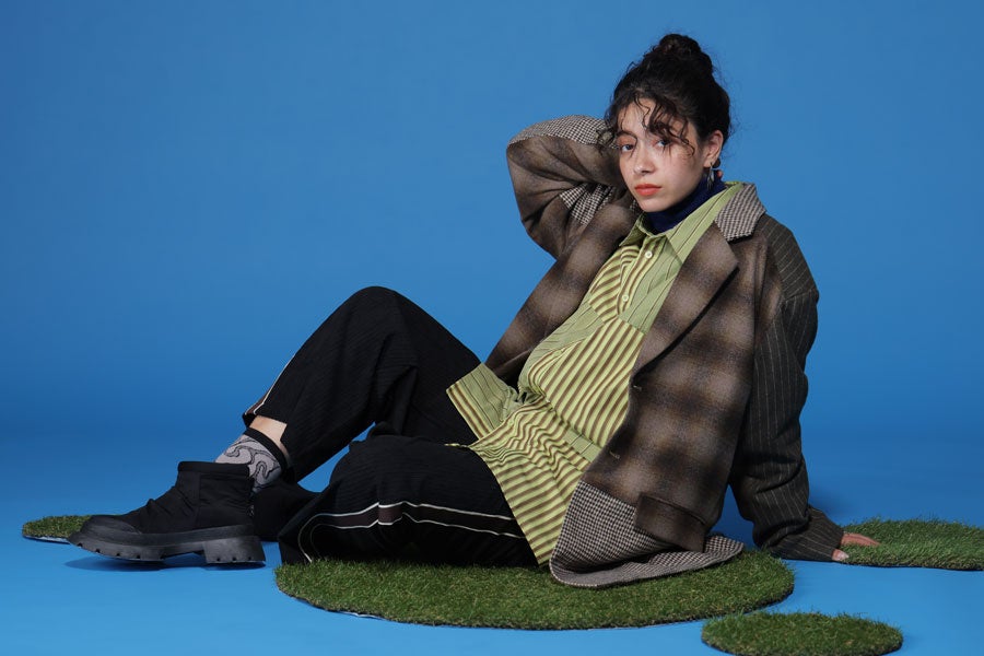 JACKET¥17,600 / ONEPIECE¥11,000 / KNIT¥7,920 / BAG¥7700 / SNEAKERS¥9,900