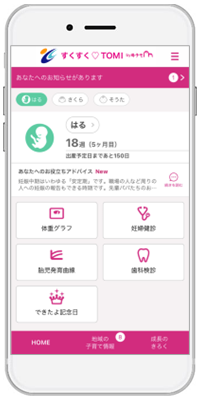 長野県東御市に採用された『すくすく ♥ TOMI』は、スマートフォン・タブレット端末・PCに対応したサービスで、妊産婦と子どもの健康データの記録・管理や予防接種のスケジュール管理、出産・育児に関するアドバイスの提供、離れた地域に住む祖父母など家族との共有機能や、市が配信する地域の情報をお知らせするなど、育児や仕事に忙しい保護者を助けてくれる便利な機能が充実しています。