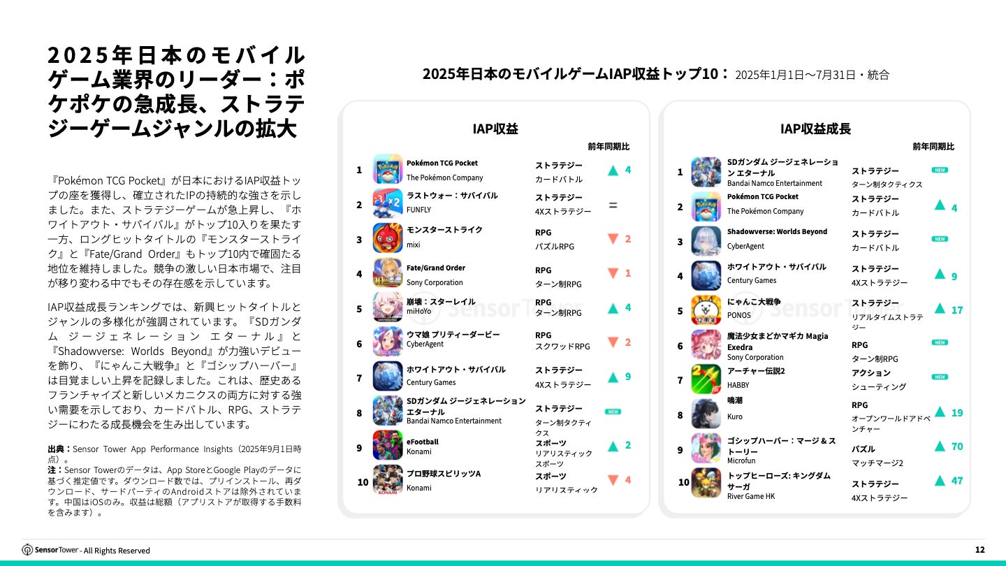 2025年日本のモバイルゲーム業界のリーダー:ポケポケの急成長、ストラテジーゲームジャンルの拡大