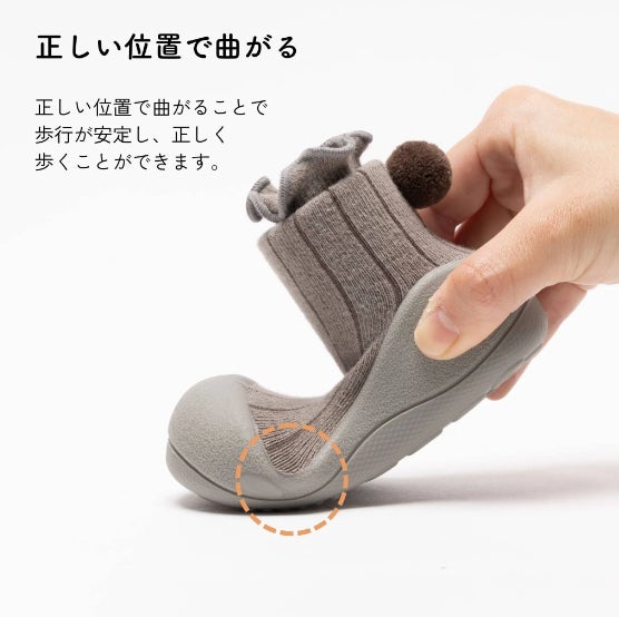 「裸足の感覚に近付けるにはどうしたらいいのか?」そのテストを繰り返して完成したアティパスは、裸足になれない環境や気候の中で、赤ちゃんの歩行を妨げることなく、傷や怪我から守りながら、正しい足の発達を促すことができます。