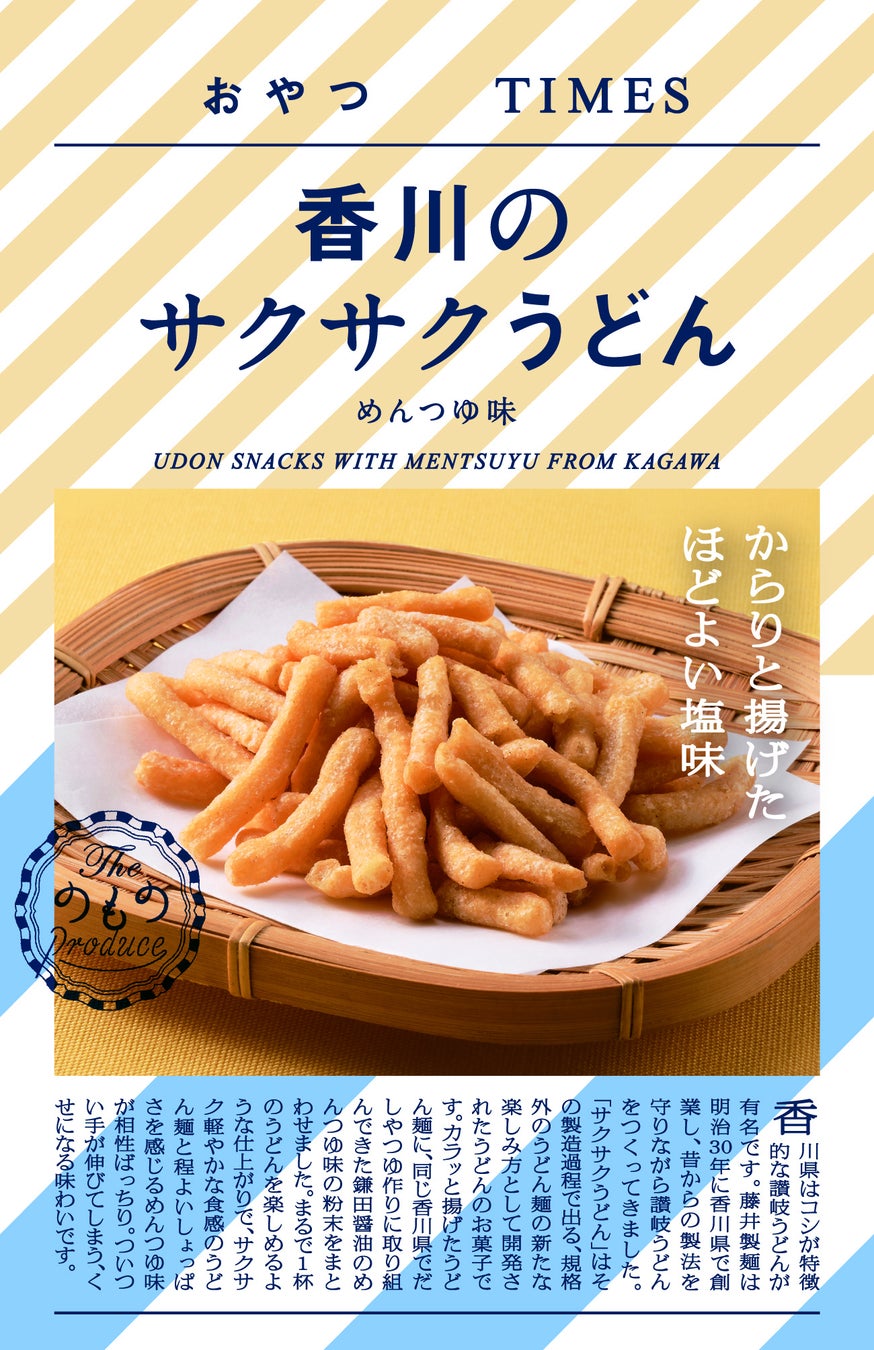 地産品ショップ「のもの」プロデュース『おやつTIMES』新商品「愛媛のセミドライ温州みかん」「香川のサクサクうどん めんつゆ味」の販売を開始します!