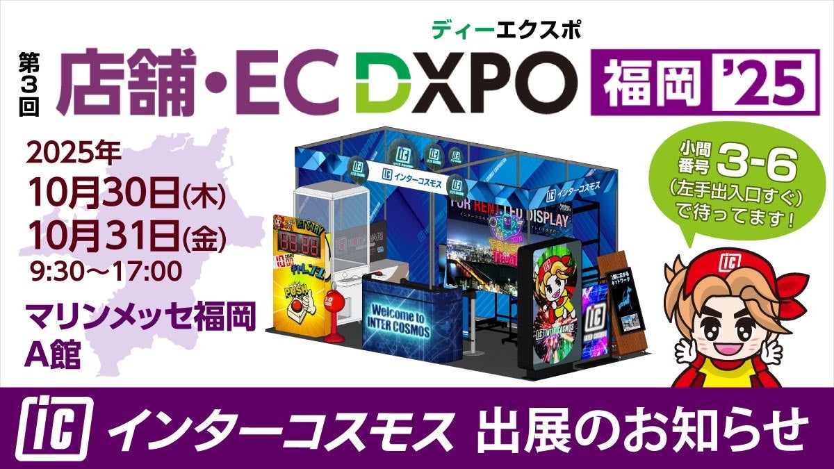 インターコスモスは、2025年10月30日(木)・31日(金)にマリンメッセ福岡 A館で開催される『第3回 店舗・EC DXPO福岡’25』に出展いたします。