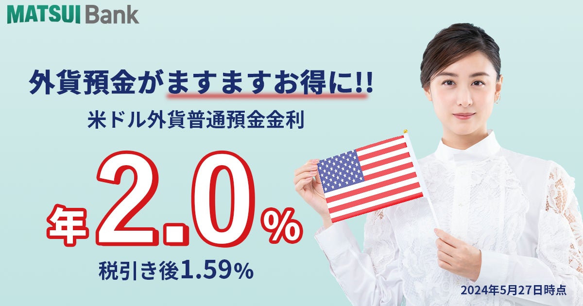 MATSUI Bank、外貨(米ドル)普通預金金利を業界最高水準 年2.00%(税引前)に引き上げ