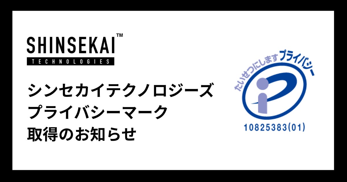 株式会社SHINSEKAI Technologies(本社:東京都渋谷区、代表取締役:大社 武、以下:当社)は、2025年6月3日付で、一般財団法人日本情報経済社会推進協会(JIPDEC)よりプライバシーマークの認定を取得したことをお知らせいたします。