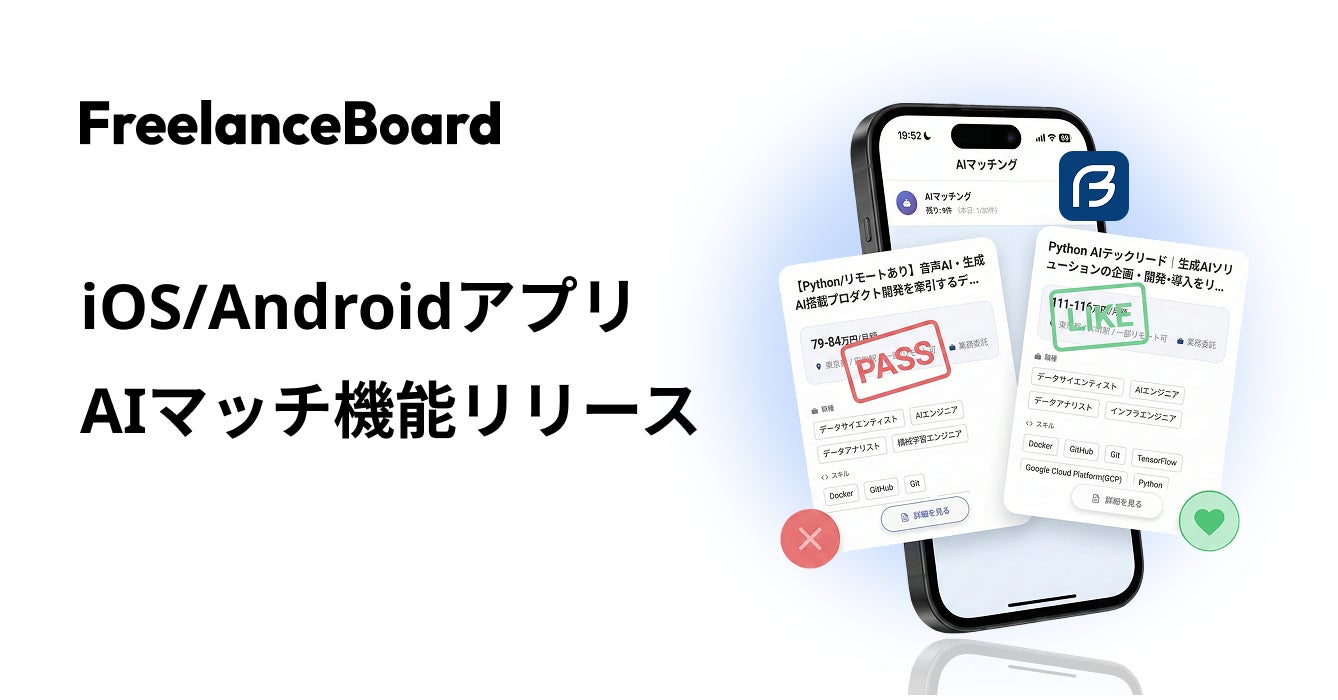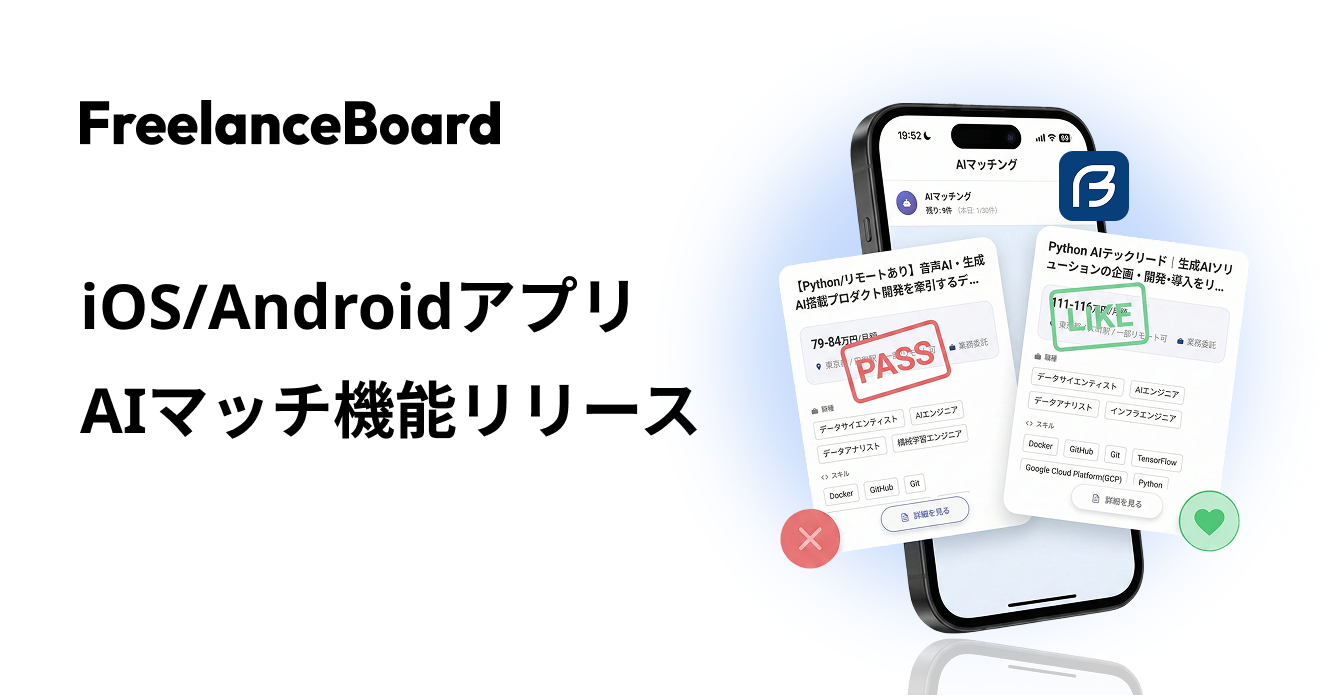 "見つける"から"届く"へ。ITフリーランスの案件・求人検索サイト『フリーランスボード』、iOS/AndroidアプリにAIマッチ機能を搭載