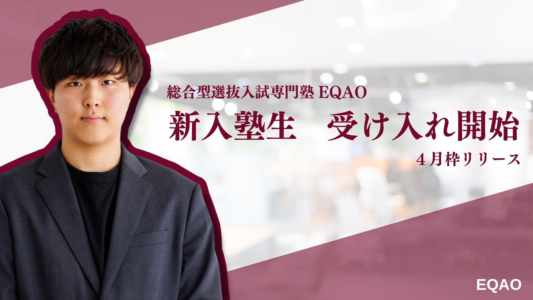 総合型選抜入試専門塾EQAOでは、新学期に伴い、4月限定で新規入塾生枠を40名まで増枠します。