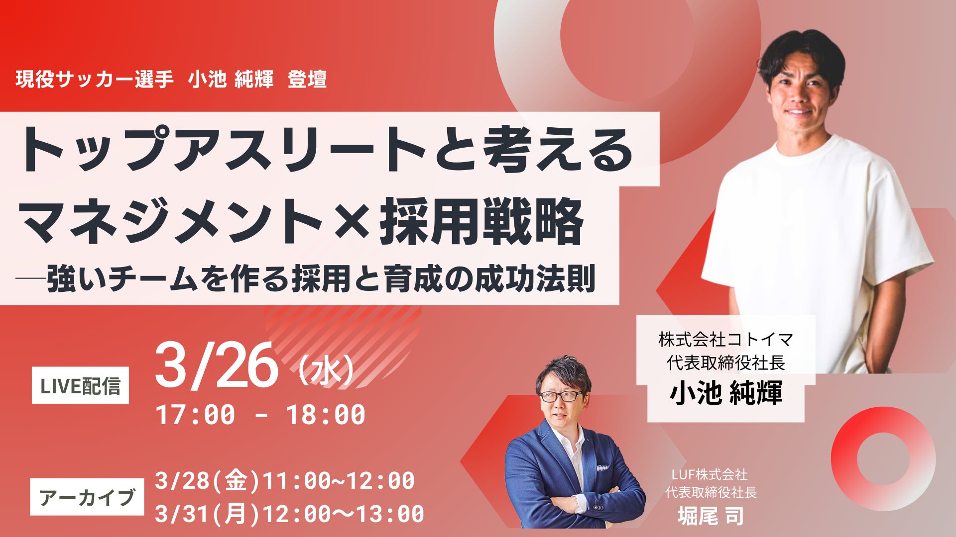 LUF、「トップアスリートと考えるマネジメント×採用戦略──強いチームを作る採用と育成の成功法則」に関する共催セミナー開催!【3月26日(火) 17:00〜18:00開催】