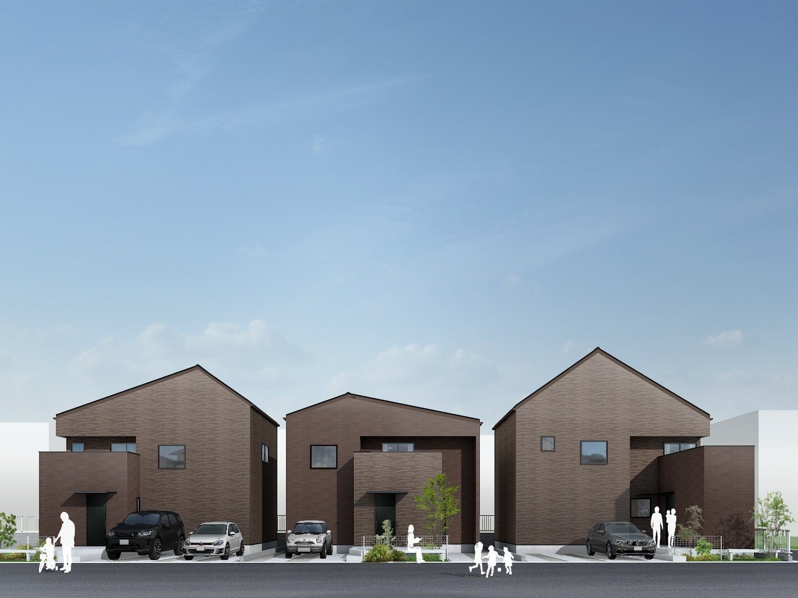 一級建築士事務所「DNA」とコラボレーションしたデザイン性の高い家は、ただ1邸の家という考えではなく、連続した住宅群が織りなす美しさと、地域のコミュニティが醸成され、年月を経ても愛され続ける街並みを考えて設計されております。