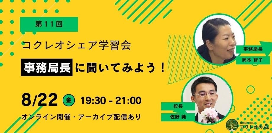 認定NPO法人コクレオの森主催 「第11回コクレオシェア学習会」開催のお知らせ