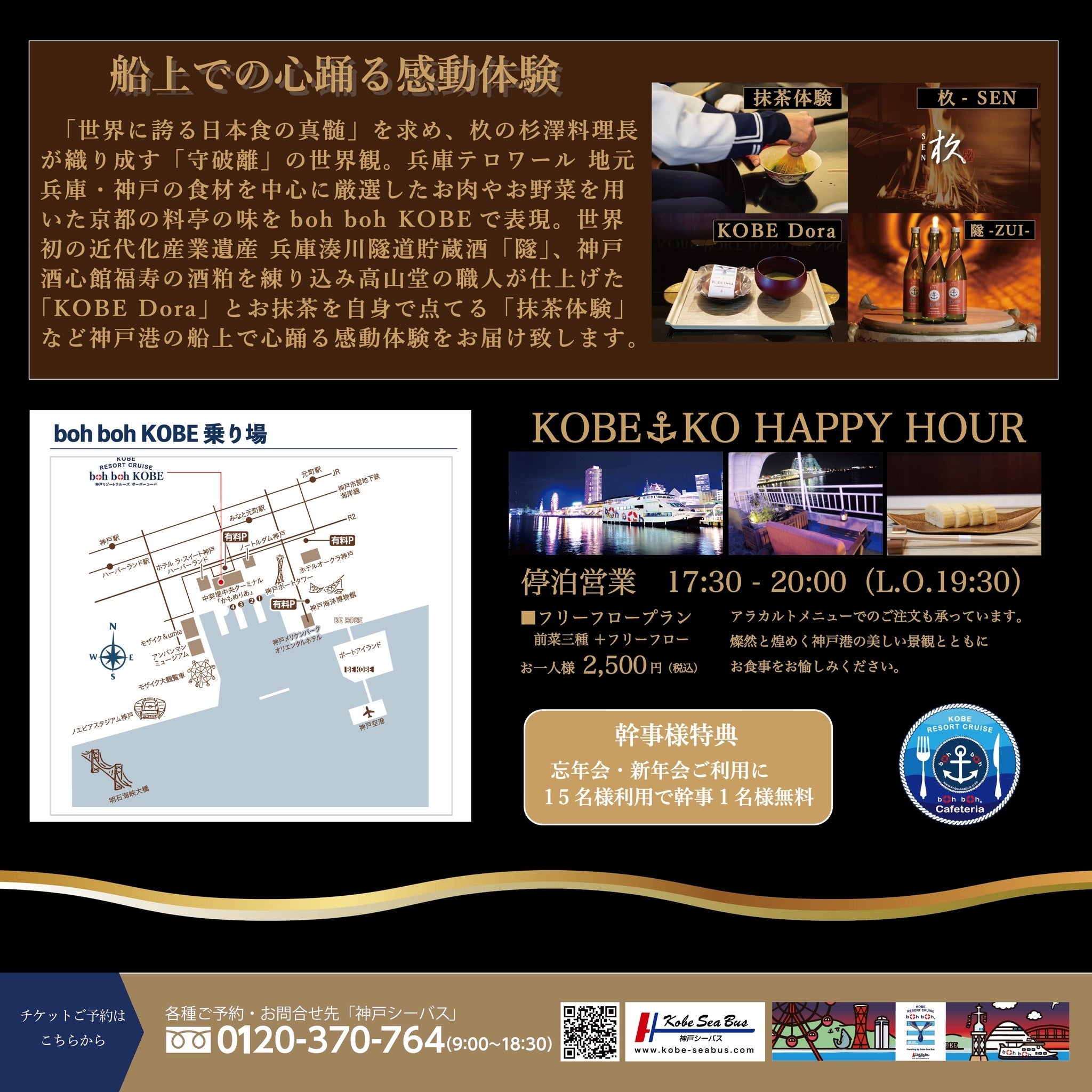 神戸シーバス boh boh KOBEでは11月28日(金)より、金曜日の停泊営業にて、兵庫×京都テロワールを味わう特別プラン『「杦」監修 鍋料理』を販売いたします!
