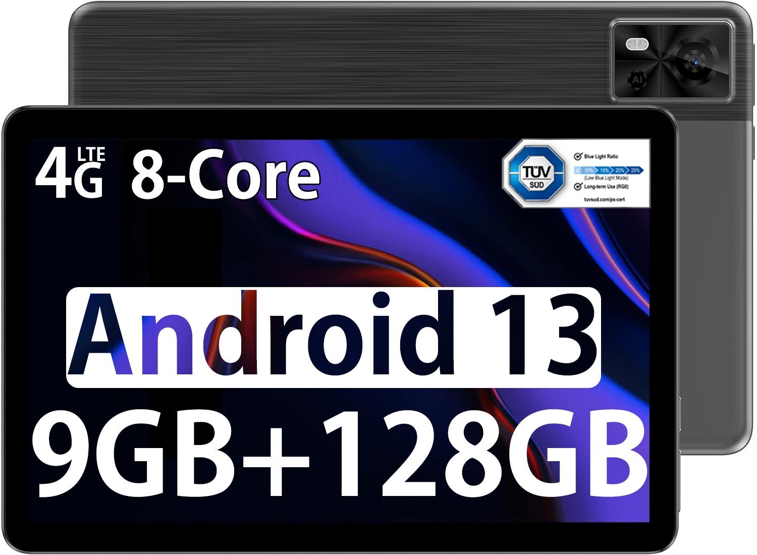 DOOGEE T10E Android 13 タブレット 10インチ wi-fiモデル、UNISOC 8コアCPU、9GB (4+5拡張) +128GB、1280*800 IPS HD 画面、6580mAhバッテリー、SIMフリー タブレット 4G LTE、8MP/5MPカメラ、Widevine L1対応+TUV ブルーライト認証