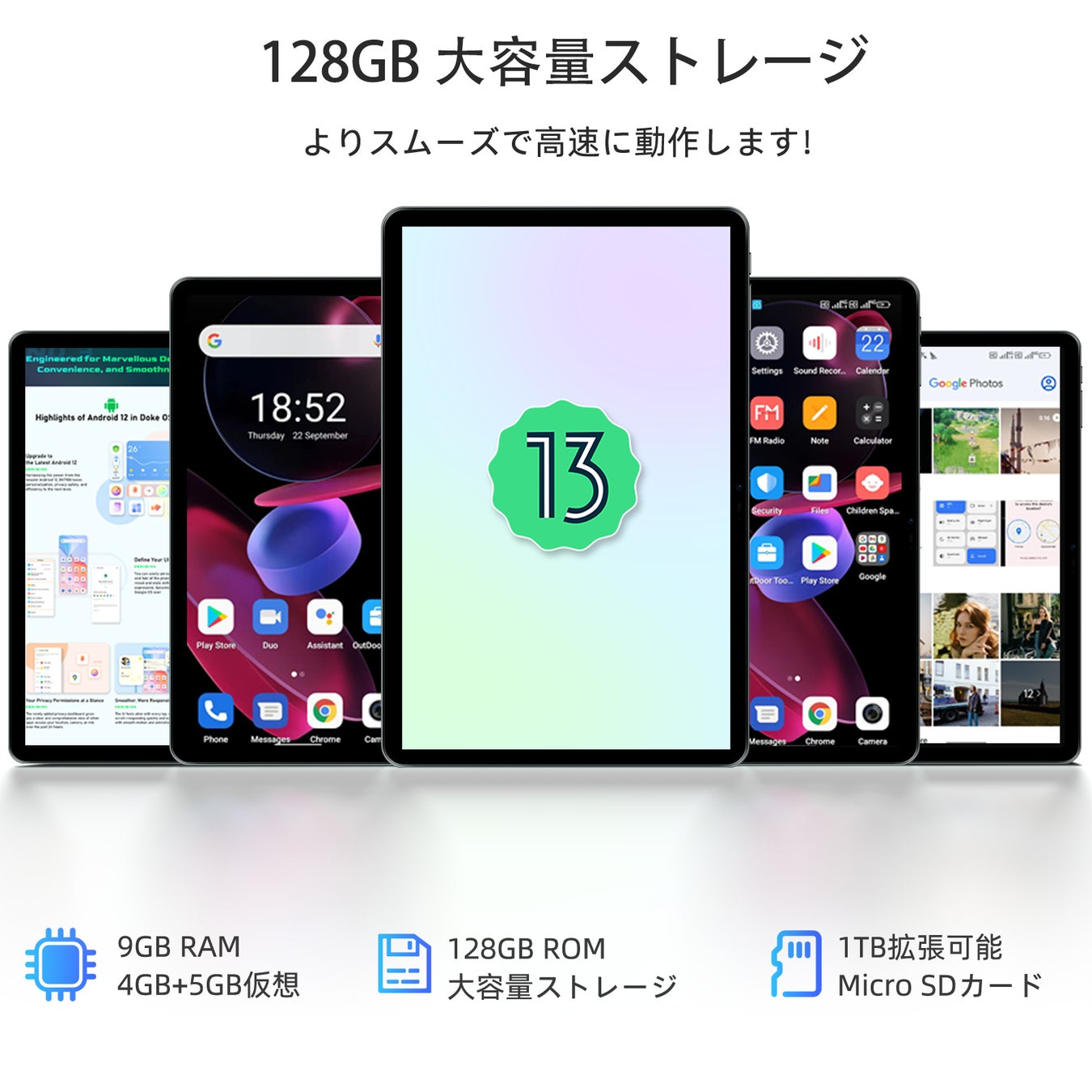 4GBのメモリ+5GBの拡張可能な仮想メモリ、合計9GBの融合メモリを搭載しています。これにより、タブレットは複数のアプリケーションを簡単かつスムーズに切り替えることができ、ラグをなくし、高速でスムーズな操作体験を提供します。128GBの大容量ストレージも搭載されているため、メモリ不足を心配する必要はもうありません。 大容量の1TBまでのmicroSDカードでストレージ容量をさらに拡張できます。(FAT32、exFATフォーマットカードは別売り)
