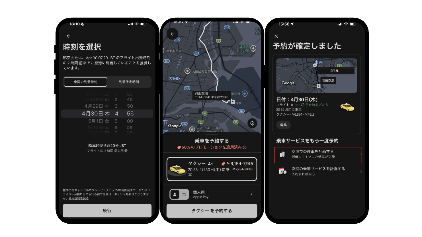 *2 乗車予定日時の直前に予約された場合、対応可能なドライバーとリアルタイムでマッチングされる場合があります。
