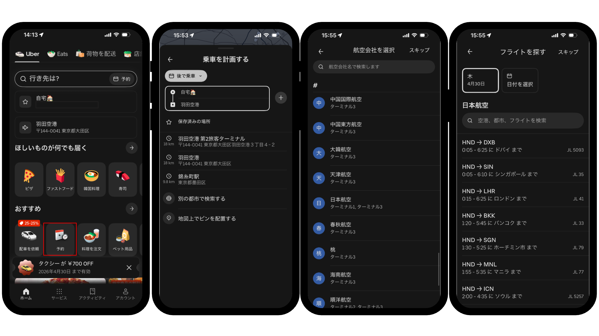 ※羽田空港のみUber プレミアムの予約配車でもフライト追跡機能をご利用いただけます