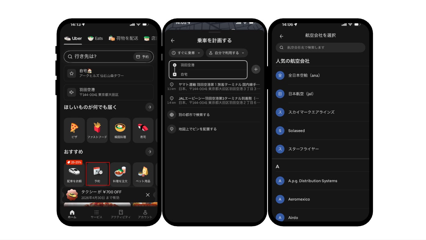 Uber Japan株式会社(以下、Uber Japan)は2026年4月27日(月)、国内主要6空港(羽田空港、伊丹空港、中部国際空港、新千歳空港、那覇空港、神戸空港)において、フライト情報と連動した空港発着の予約配車機能の提供を開始したことを発表しました。