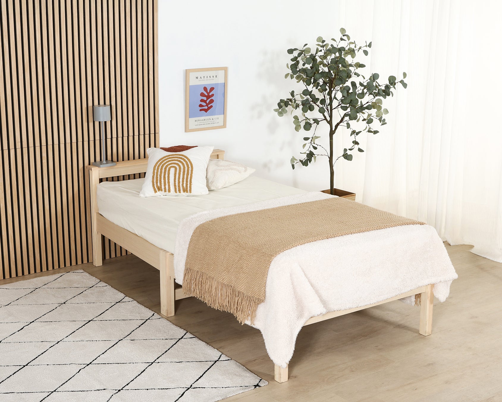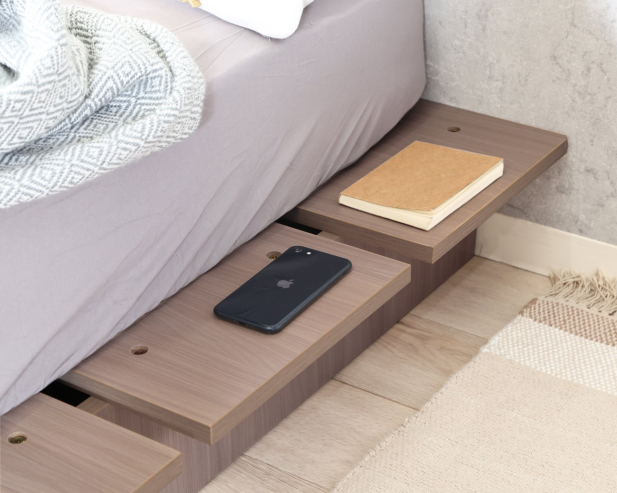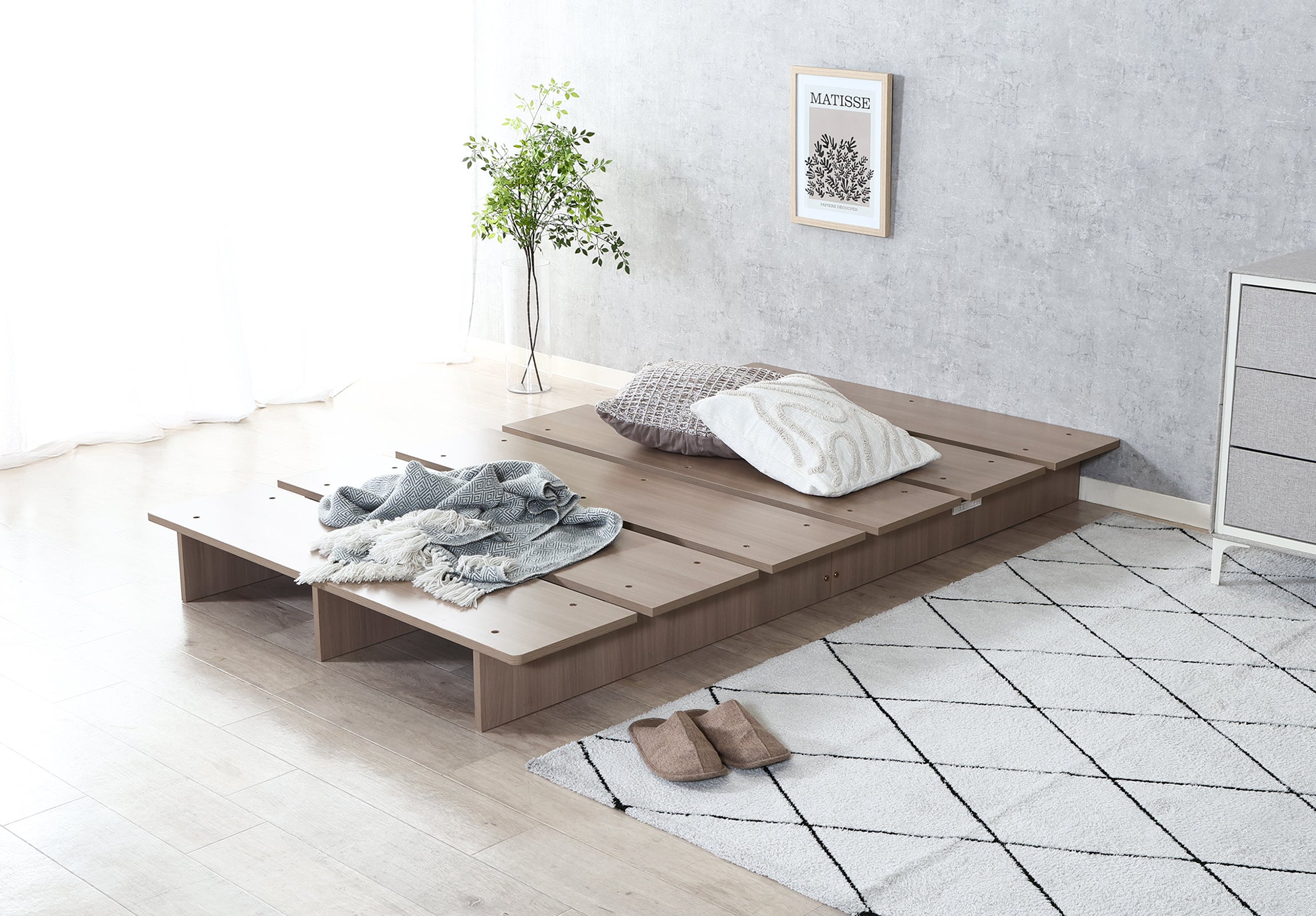 木目×ロースタイルでお部屋を広く見せる「デザインベッド」