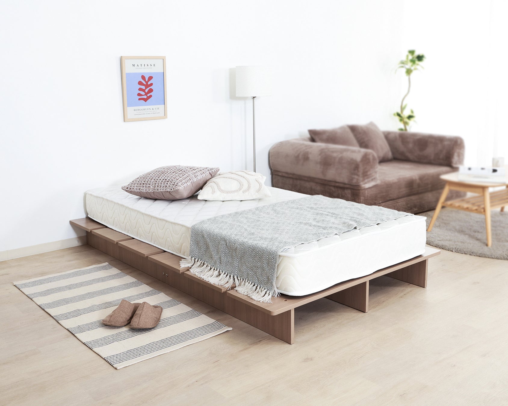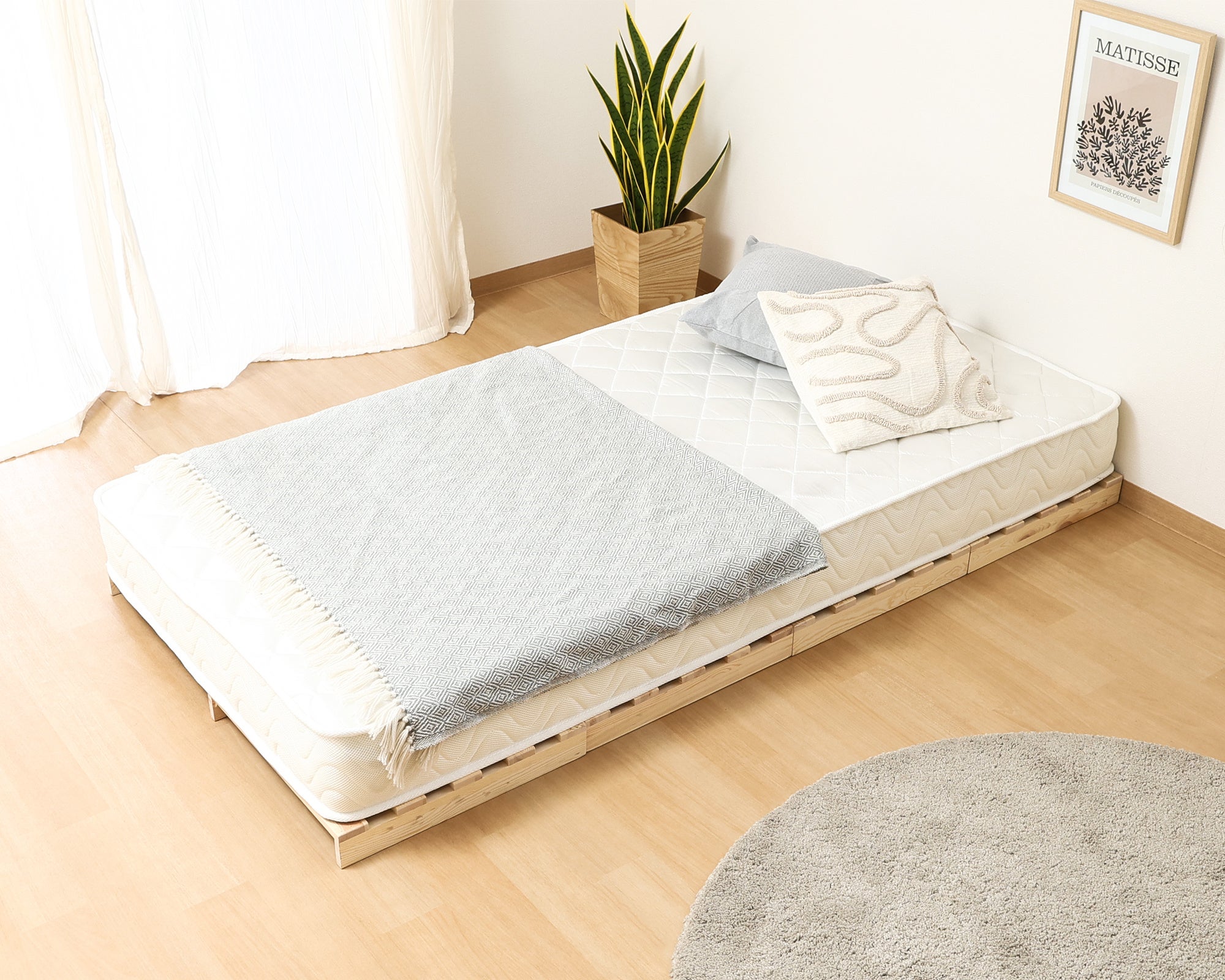 置くだけ簡単。高さ約7cmのロースタイルで部屋が広く見える「開放系ベッド」