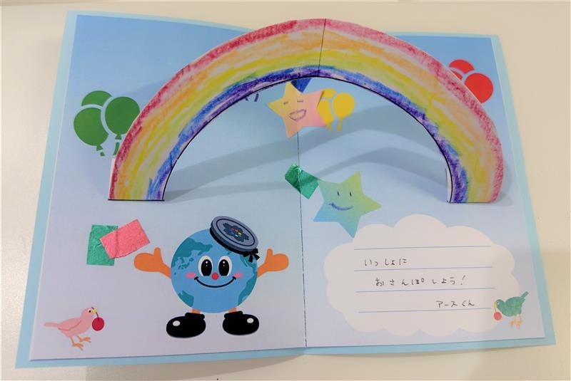 なる言葉を伝えると、アースくんのステッカーをプレゼント!
