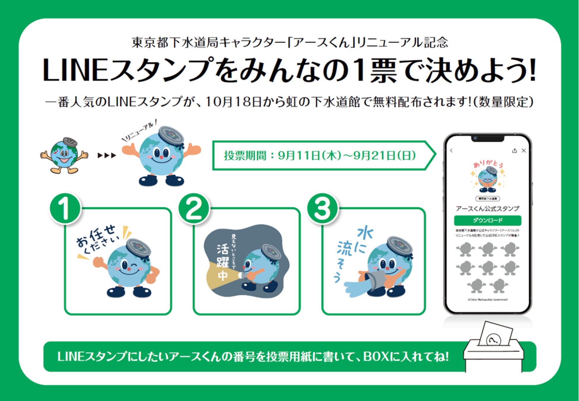 東京都下水道局の公式キャラクター「アースくん」は、令和7年9月10日「下水道の日」に誕生25周年を迎え、デザインをリニューアルしました。リニューアルを記念して、下水道やわたしたちのくらしについて楽しく学べるイベントを特別に開催いたします。
