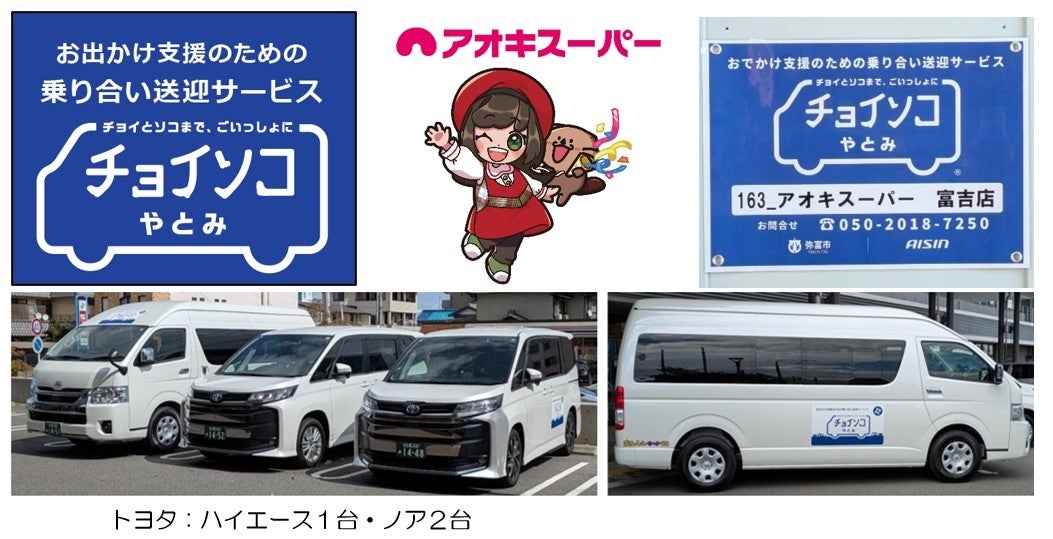 株式会社アオキスーパーは、地域の移動手段の拡充および高齢者の外出促進を目的に、弥富市と株式会社アイシンが協働して提供する乗り合い送迎サービス『チョイソコやとみ』 を導入いたします。