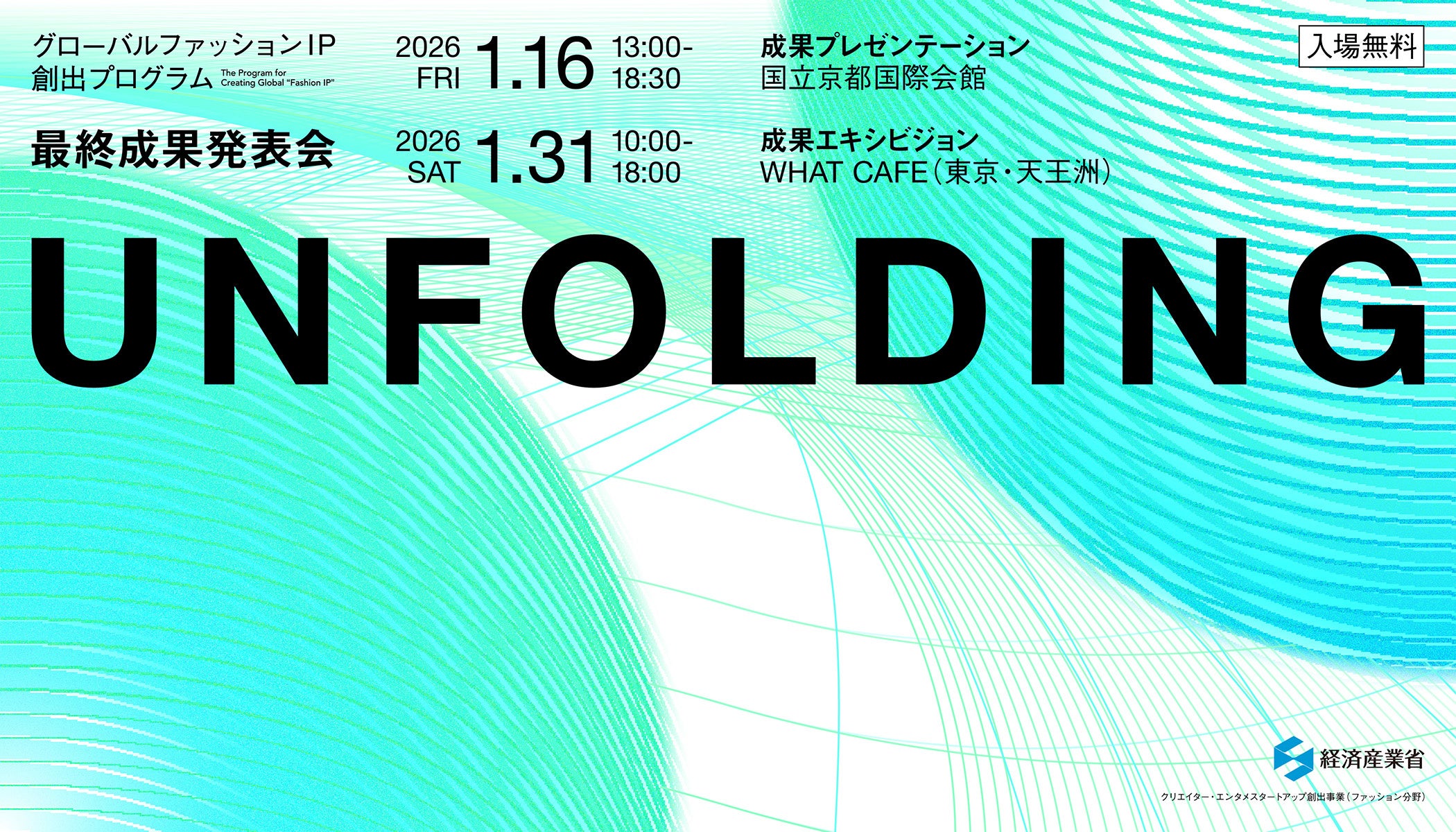 インフォバーンが事務局を務める経済産業省補助事業「グローバルファッションIP創出プログラム」の最終成果発表「UNFOLDING」を、2026年1月16日(京都)・31日(東京)の2会場にて開催
