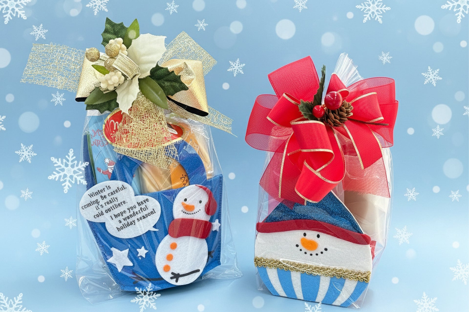 外遊びが大好きなやんちゃな子も、受験や仕事で頑張る人も、思わず笑顔になる――冬の心遣いと遊び心を一緒に届ける、特別なギフトです。そんな遊び心はそのままに、ゴールドリボンとオーナメントで上品に仕上げ、子どもも大人ももらってうれしい贈り物に。