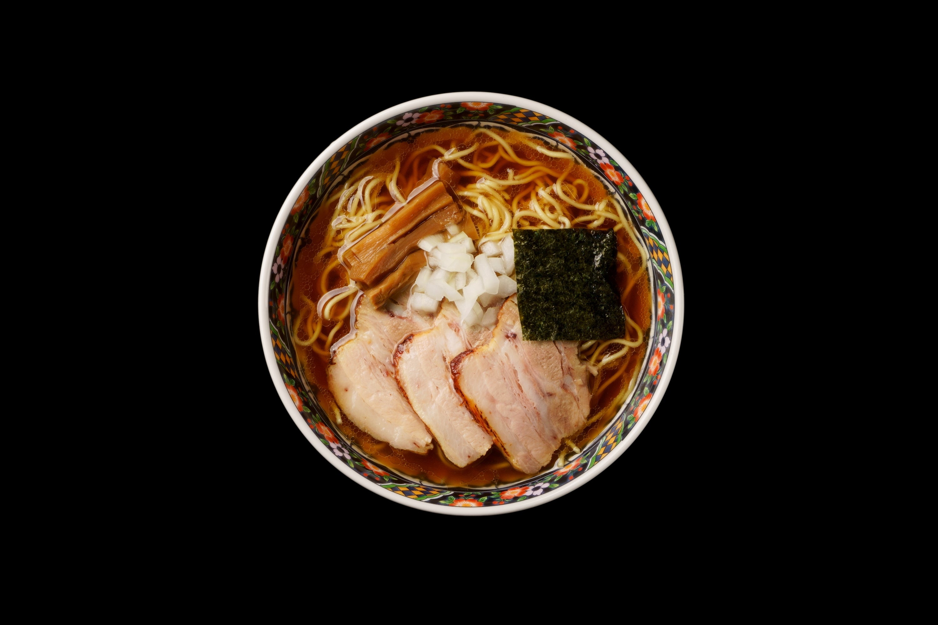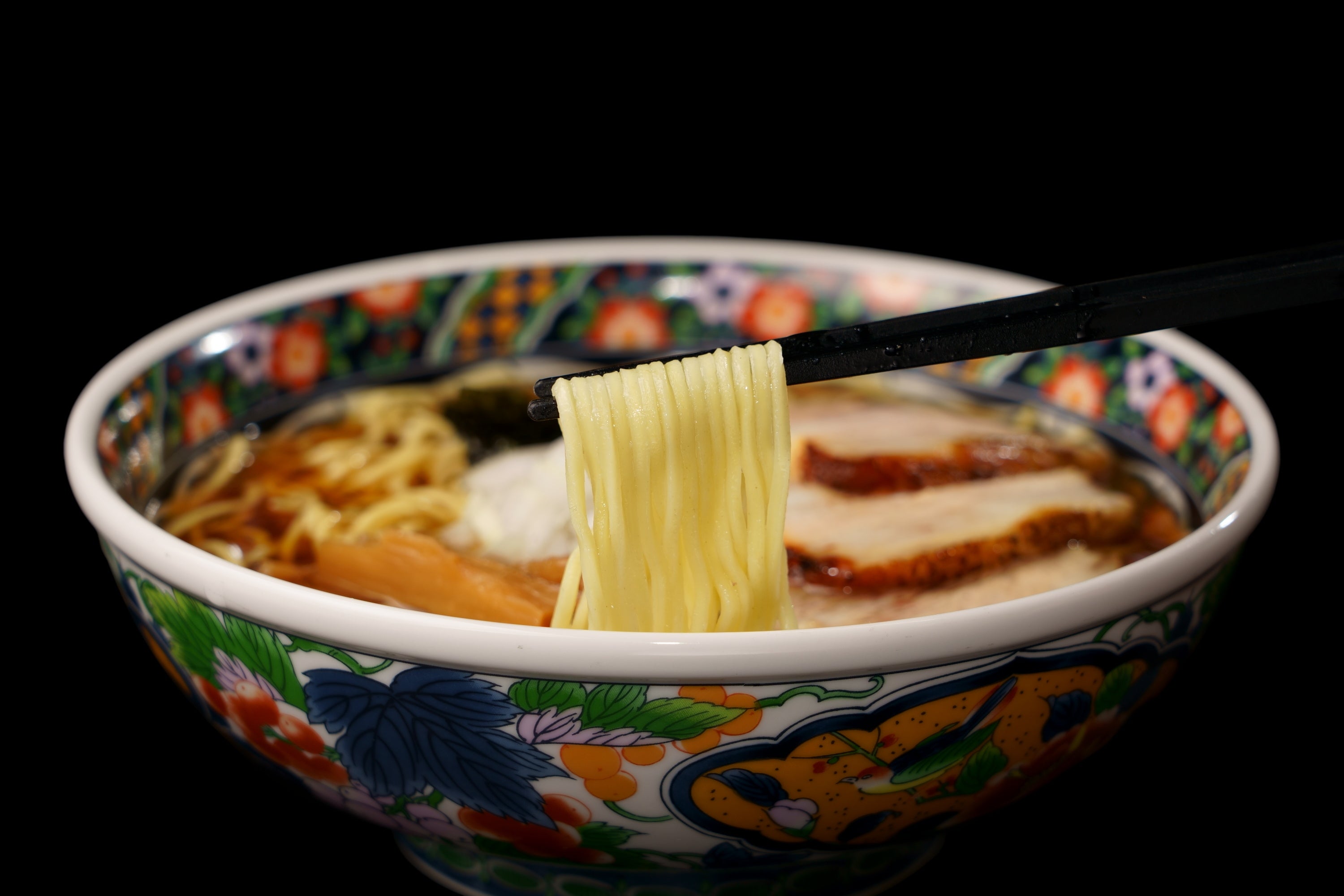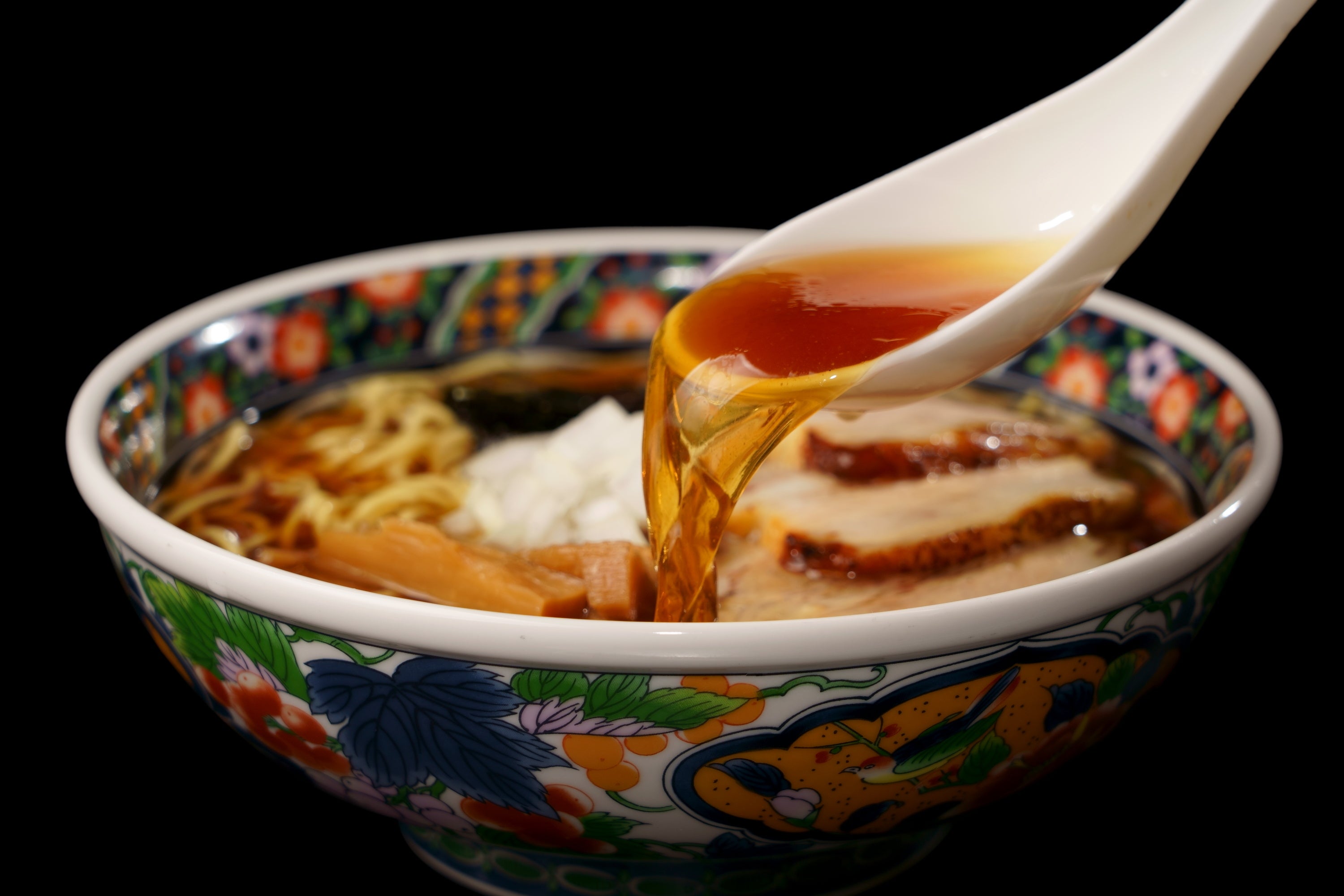 産地にこだわった鶏と豚を使用し、長時間弱火で炊き上げて旨味だけを丁寧に抽出したW清湯スープ。昆布や貝の出汁も加えることで、動物と魚介が旨味の相乗効果をもたらしています。濃口醤油にまろやかなラードのコク深さと香りが合わさって懐かしさが醸し出され、洗練された調理技術が現代風の旨味を創出。国産小麦を使用したつるつると滑らかな舌触りの自家製ストレート麺がスープを香りごと持ち上げます。釜でじっくりと香り付けされた国産バラ肉や、せいろ蒸しされた国産肩ロース肉のチャーシューも主役級の逸品です。