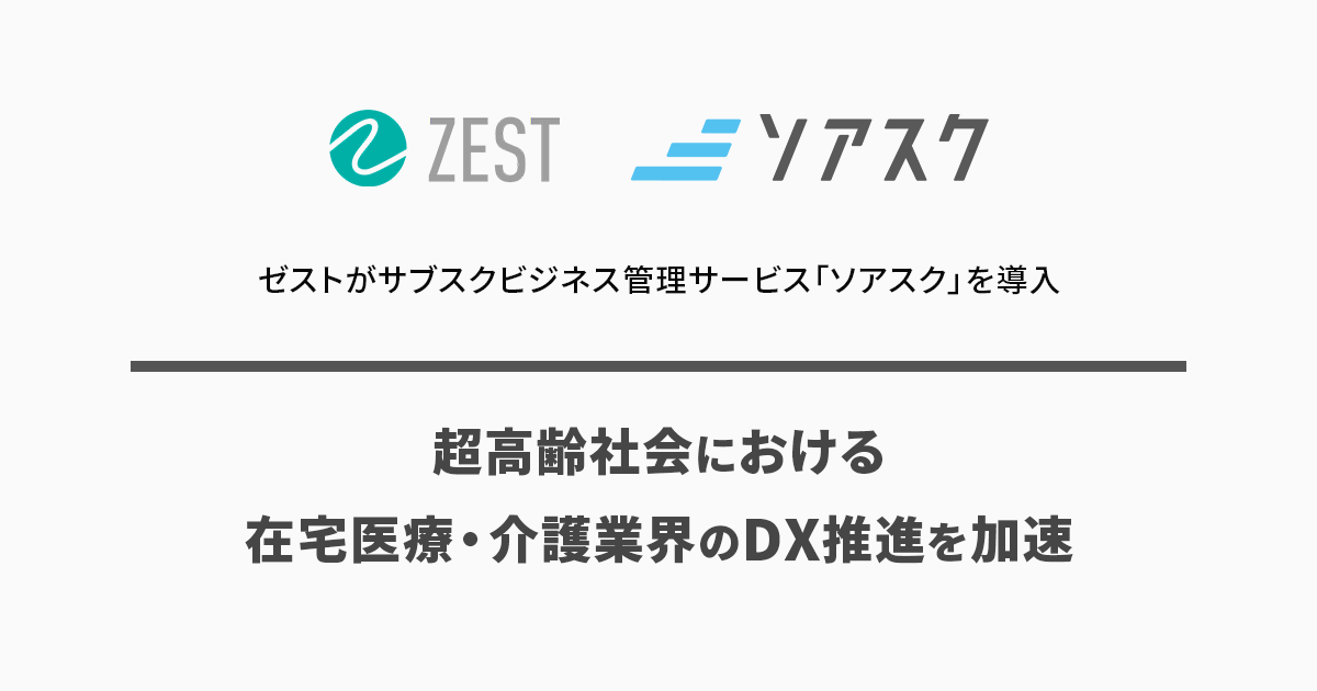 株式会社オプロ(本社:東京都中央区、代表取締役社長:里見 一典、以下オプロ)は、在宅医療・介護業界の収益改善プラットフォーム「ZEST」を提供する株式会社ゼスト(本社:東京都新宿区、代表取締役社長:一色 淳之介、以下ゼスト)が弊社のサブスクビジネス管理サービス「ソアスク」を導入したことをお知らせいたします。
