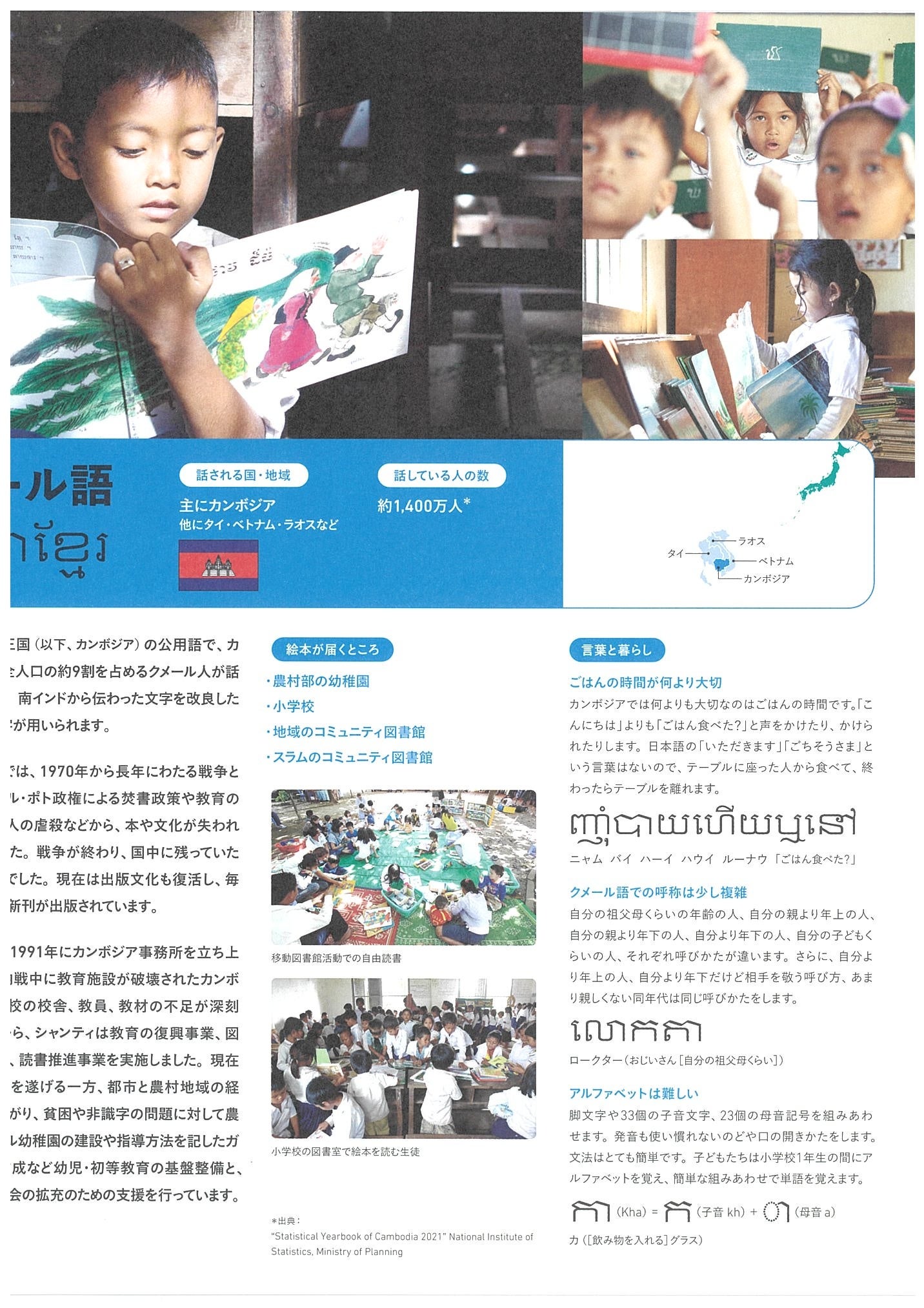 世界にはあらゆる民族が生活し、それぞれの言語でコミュニケーションし、文化を継承しています。シャンティでは長年、目の前の人の尊厳と文化を大切にし、教育文化支援活動に取り組んできたことから、文化に色濃く関係する言語ごとにまとめました。