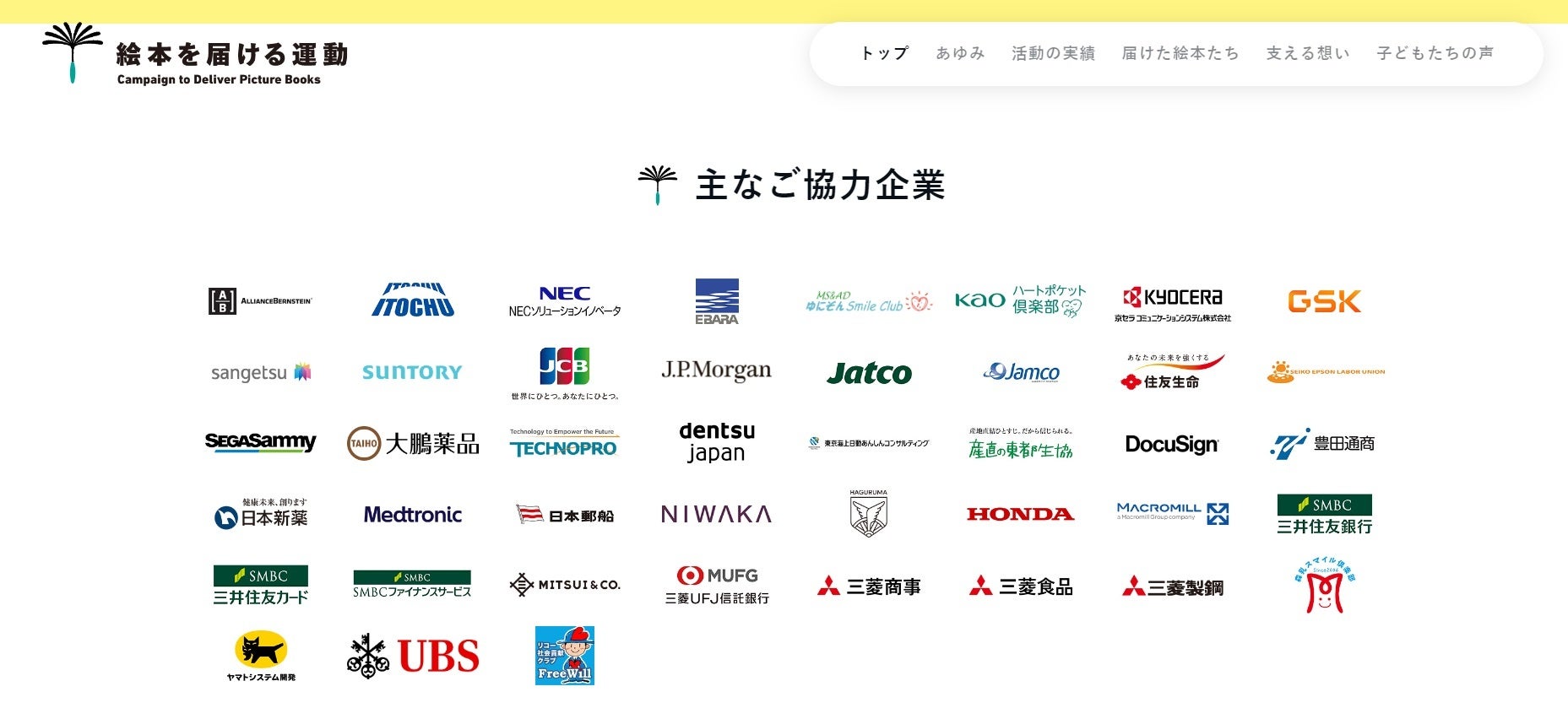 「絵本を届ける運動」は、個人はもちろん、学校、企業や団体でも参加できる活動です。ご協力いただいている企業をご紹介しています。