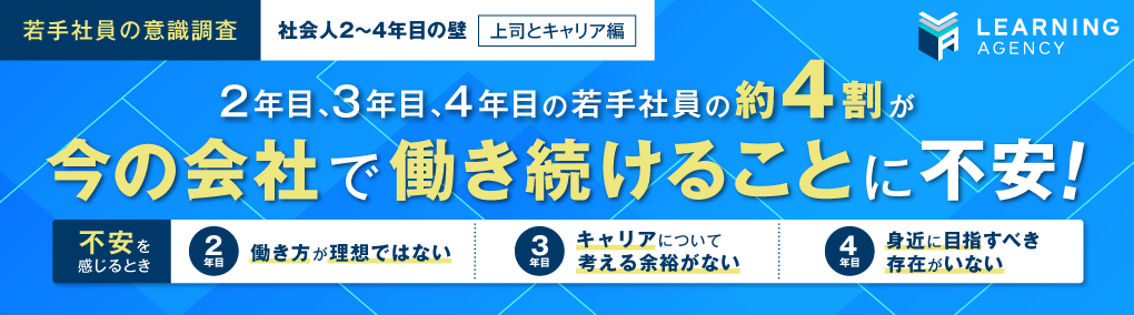 *本調査を引用される際は【ラーニングエージェンシー「若手社員の意識調査(社会人2年目~4年目の直面する壁 上司とキャリア編)」】と明記ください